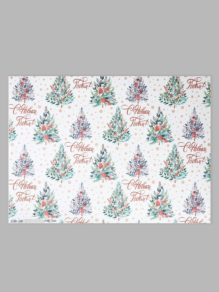 Бумага упаковочная новогодняя крафт белый "С Новым годом!", 50x70 см, UPAK LAND, Россия