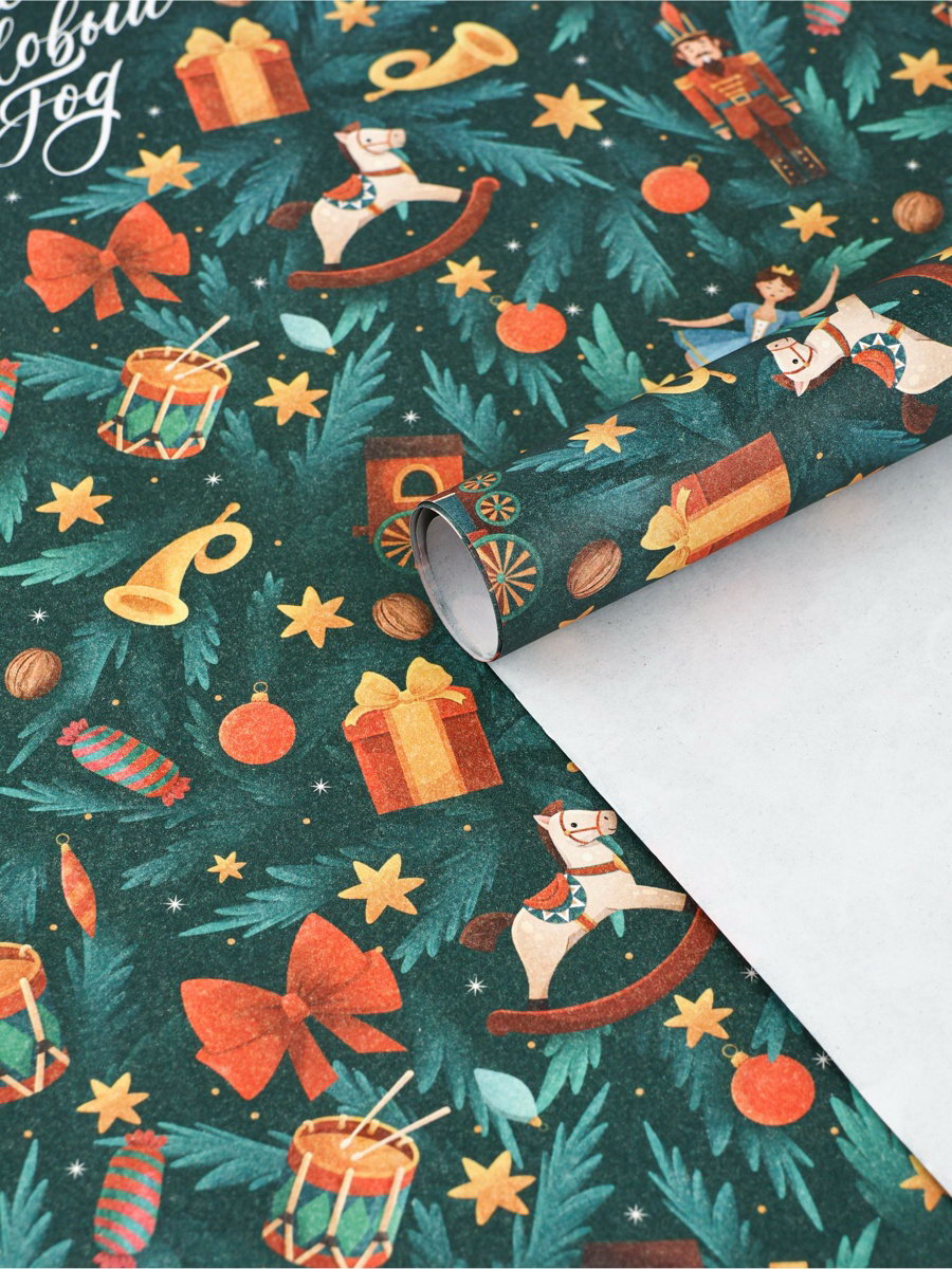 Бумага упаковочная крафтовая "Новый год 2026: Лошадь", Щелкунчик, 50x70 см, Дарите Счастье, Россия