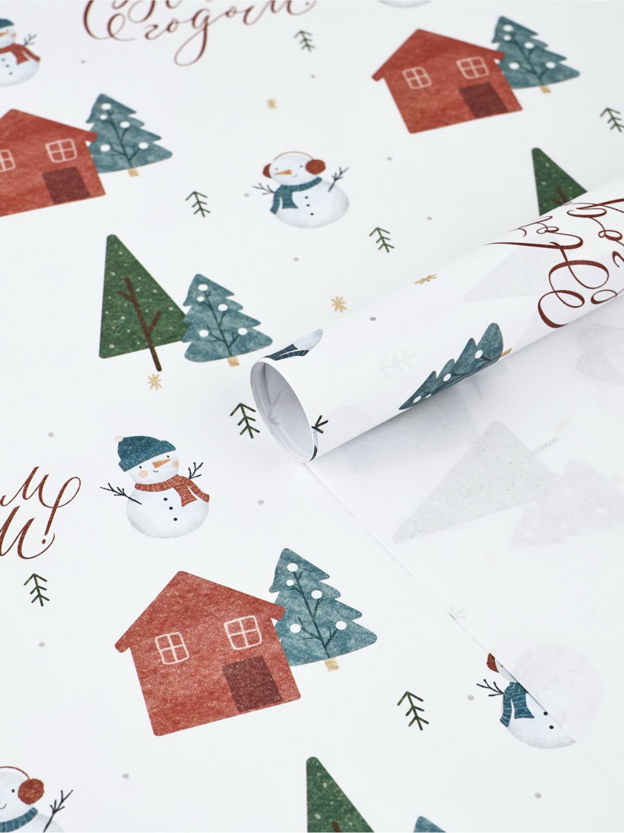 Бумага упаковочная новогодняя крафтовая "Снеговики", 50x70 см, Дарите Счастье, Россия