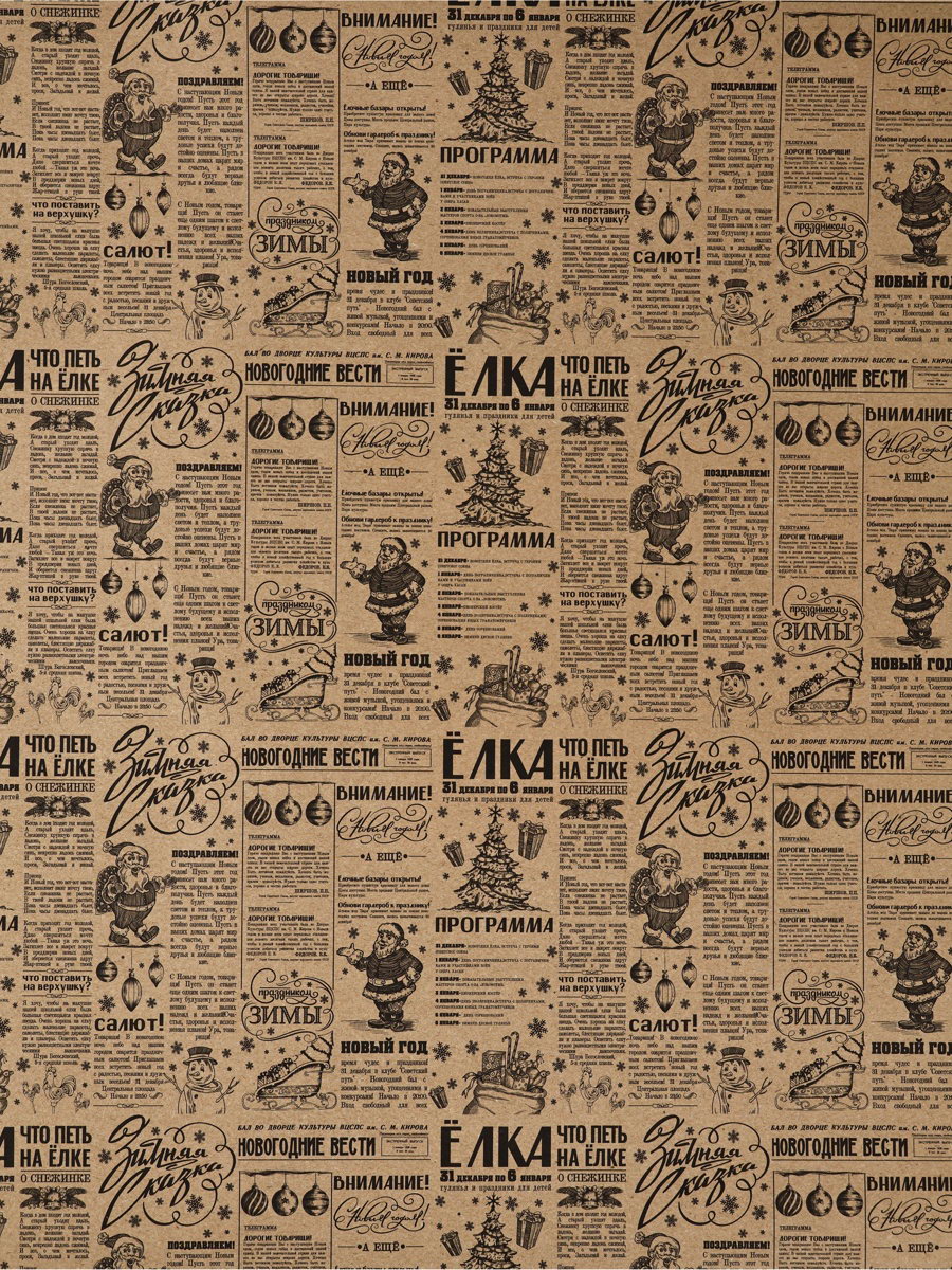 Бумага упаковочная новогодняя крафтовая "Советская газета", 50x70 см, Дарите Счастье, Россия