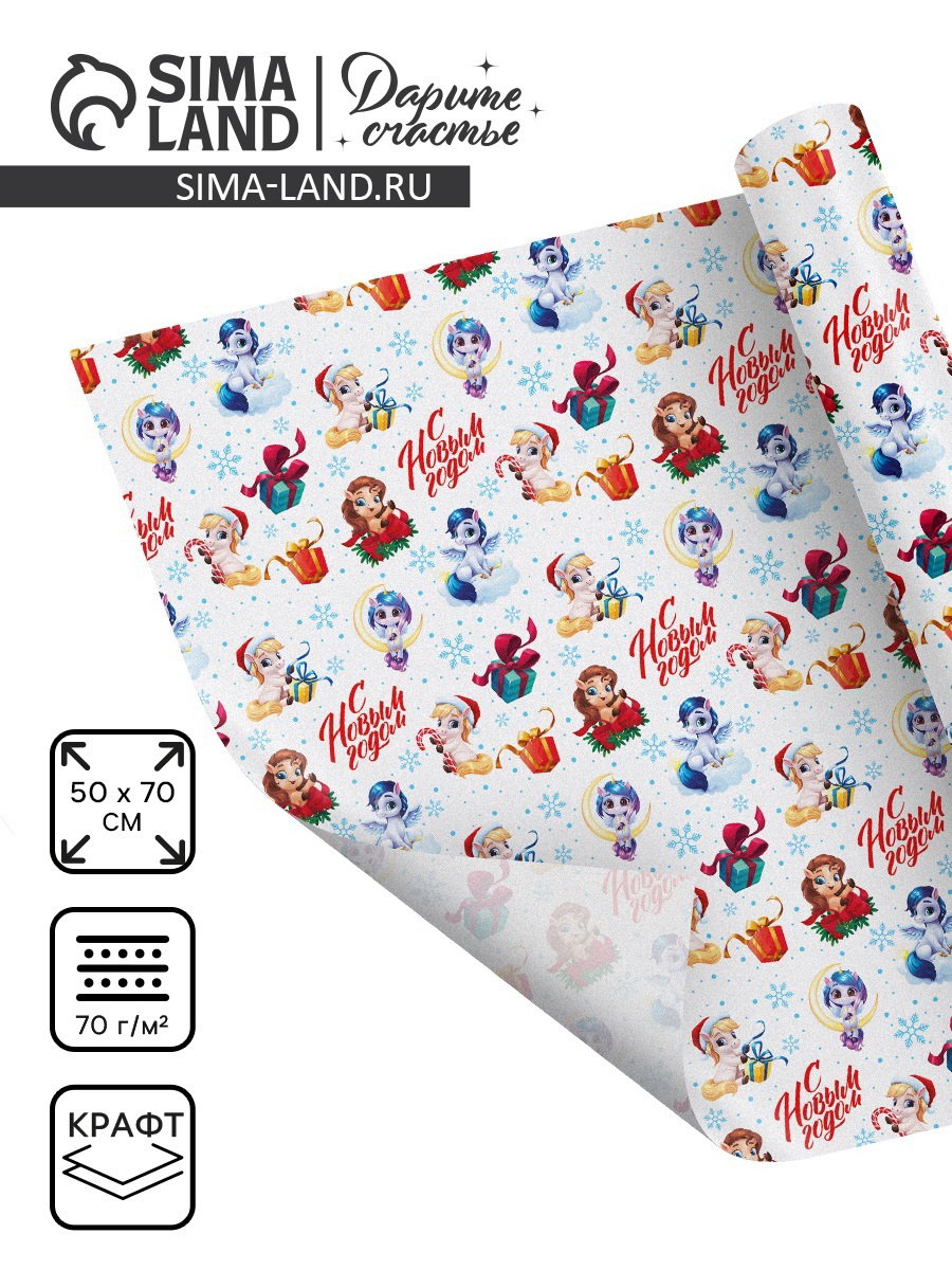 Бумага упаковочная крафтовая "Новый год 2026", лошадь, 50x70 см, Дарите Счастье, Россия