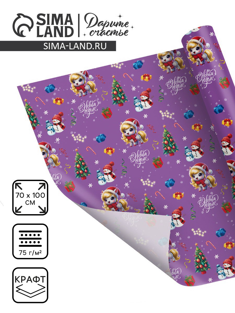 Бумага упаковочная крафтовая "Новый год 2026", лошадь, 1 лист, 70x100 см, Дарите Счастье, Россия