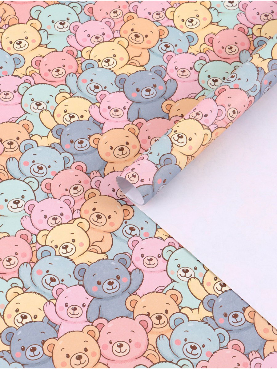 Бумага упаковочная крафтовая "Весёлые медведи", 50 x 70 см, Дарите Счастье, Россия