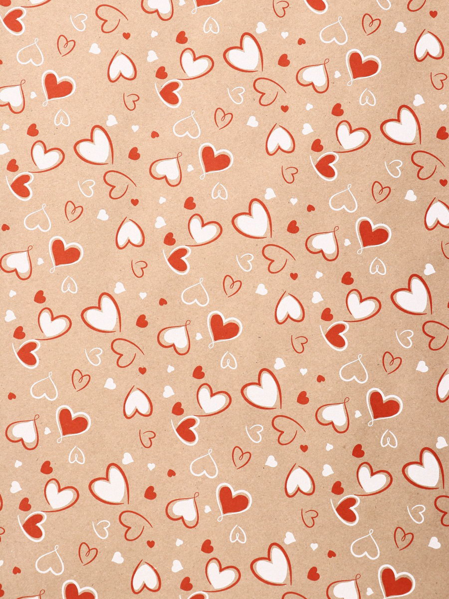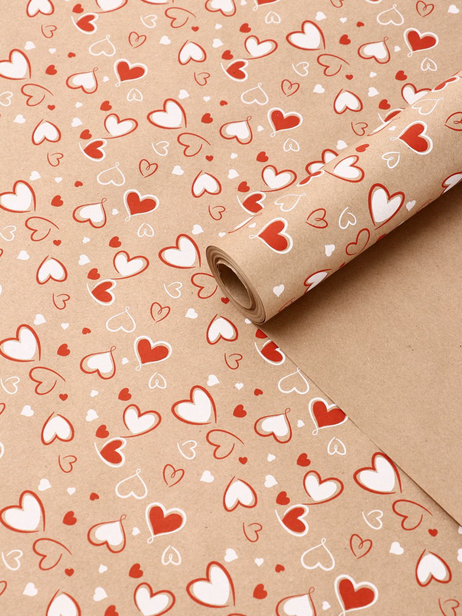 Бумага упаковочная крафт "Сердечки 2" красный/белый цвет на коричневом фоне 0.72x10+-5% м, 60 г, UPAK LAND, Россия