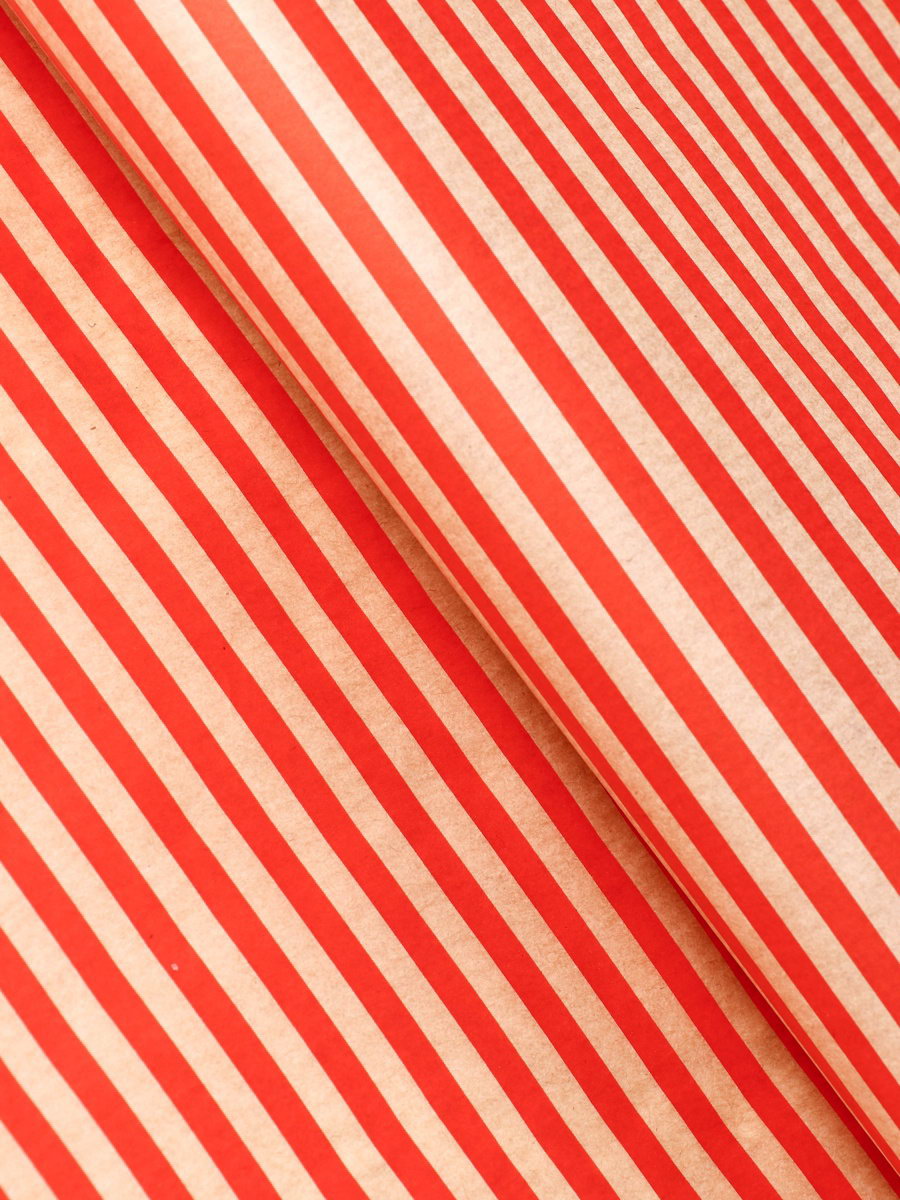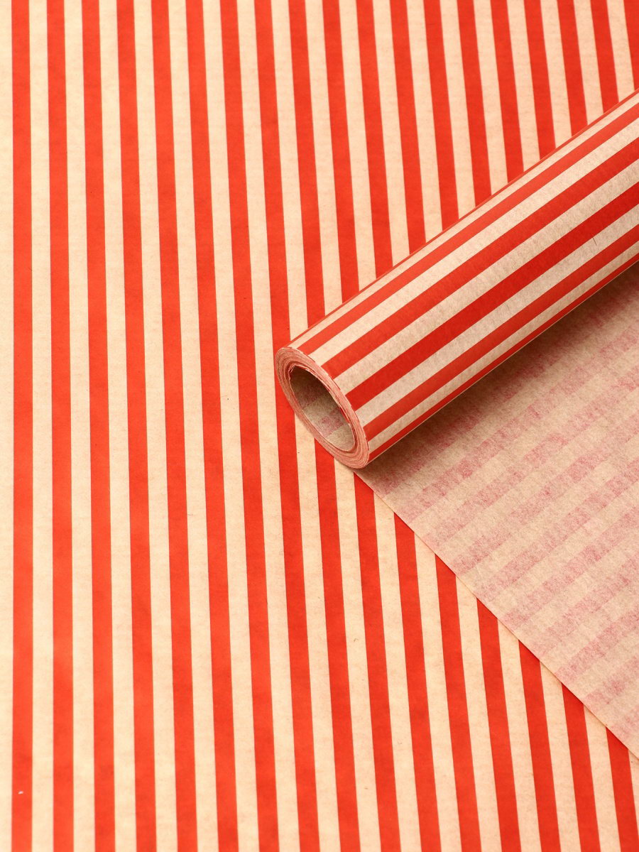 Бумага упаковочная крафт "Полосы красные", 0.68x10+-5% м, 60 г, UPAK LAND, Россия