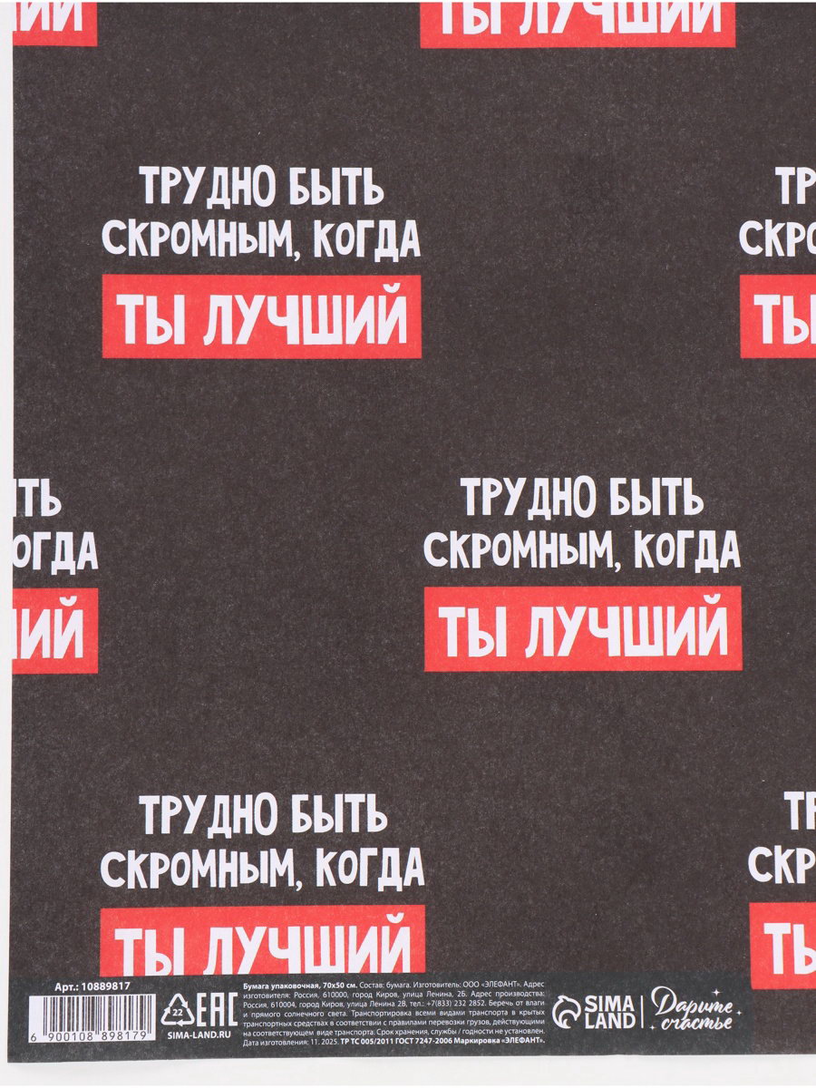 Бумага упаковочная крафтовая "Лучший", 50 x 70 см, Дарите Счастье, Россия