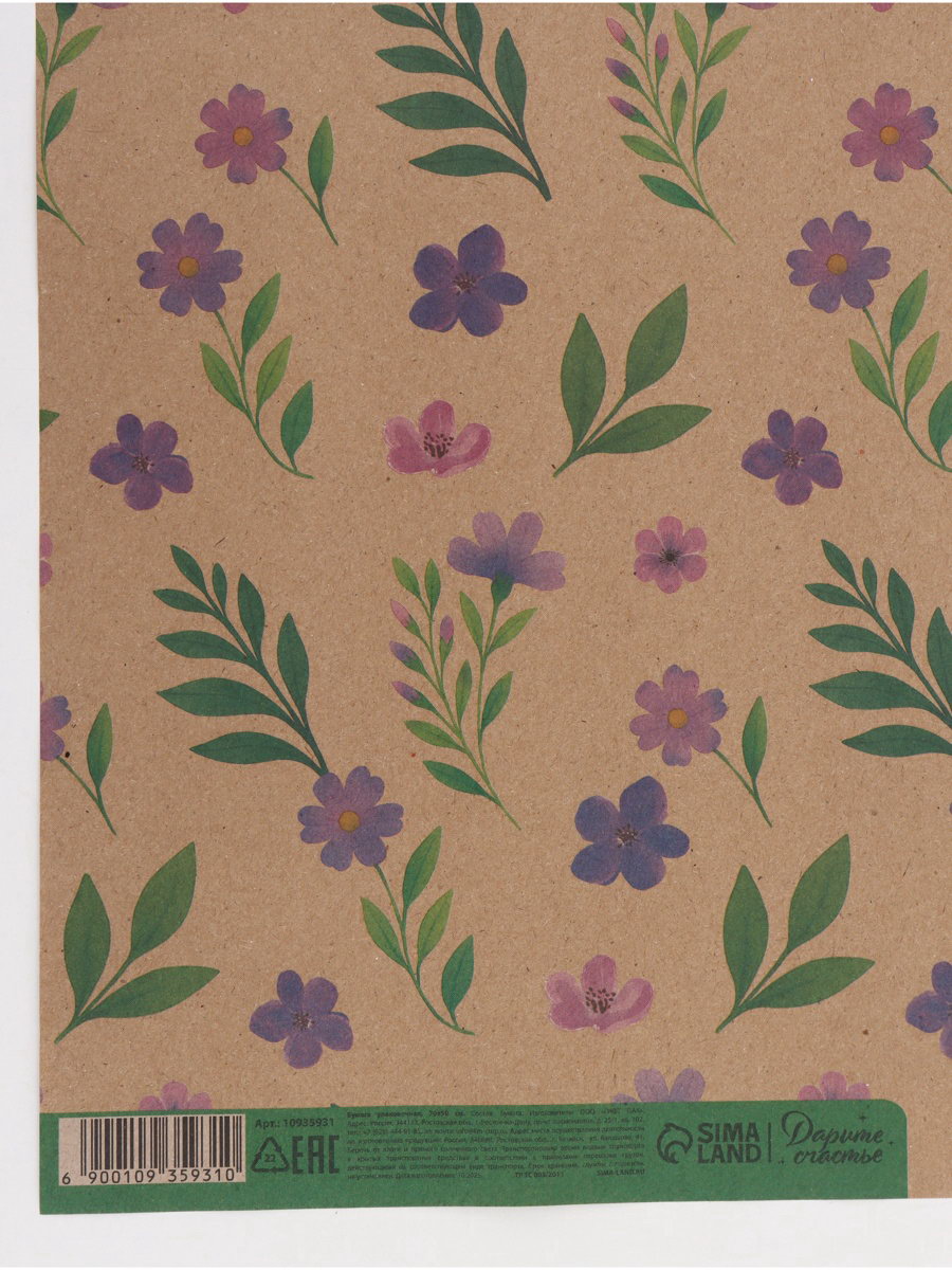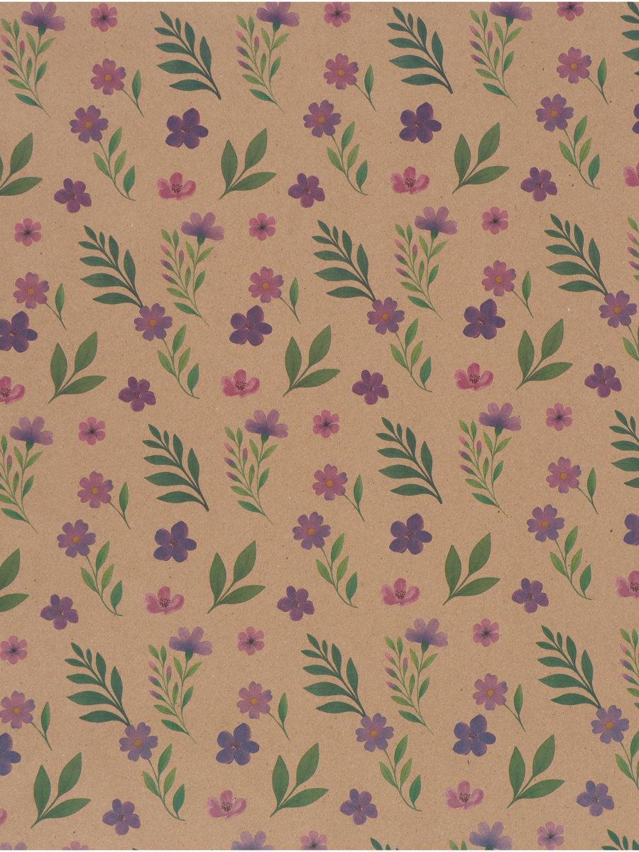 Бумага упаковочная крафтовая "Сиреневые цветы", 50 x 70 см, Дарите Счастье, Россия