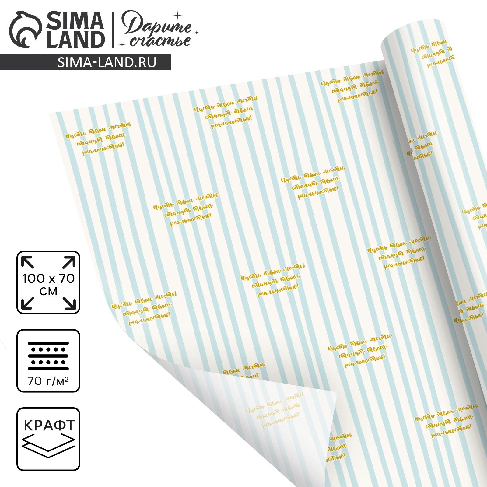 Бумага упаковочная крафтовая "Мечты", 70 x 100 см, Дарите Счастье, Россия