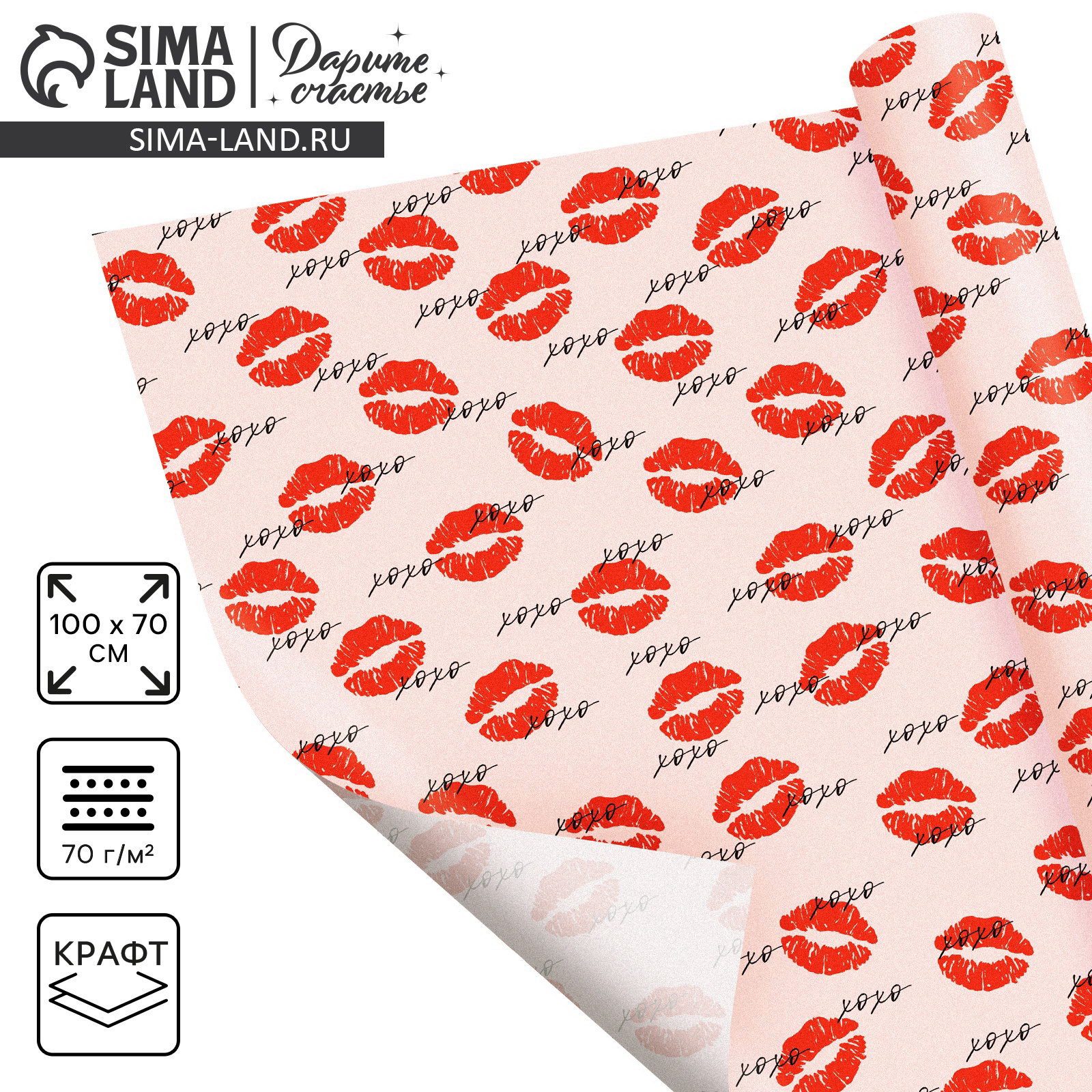 Бумага упаковочная крафтовая "Поцелуи", 70 x 100 см, Дарите Счастье, Россия
