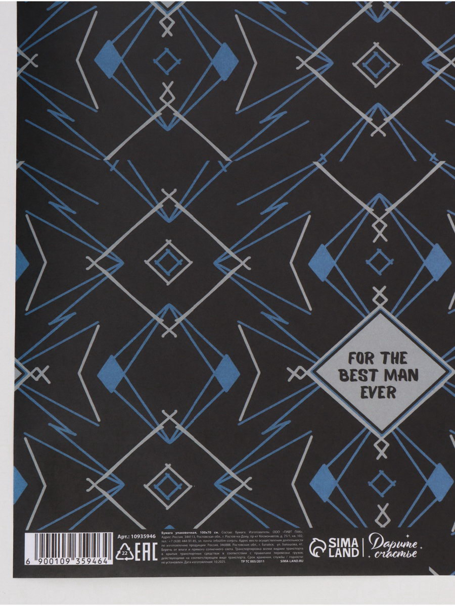 Бумага упаковочная крафтовая For the best man ever, 70 x 100 см, Дарите Счастье, Россия