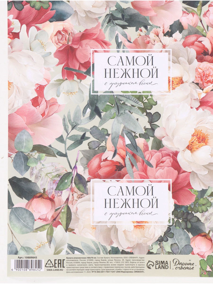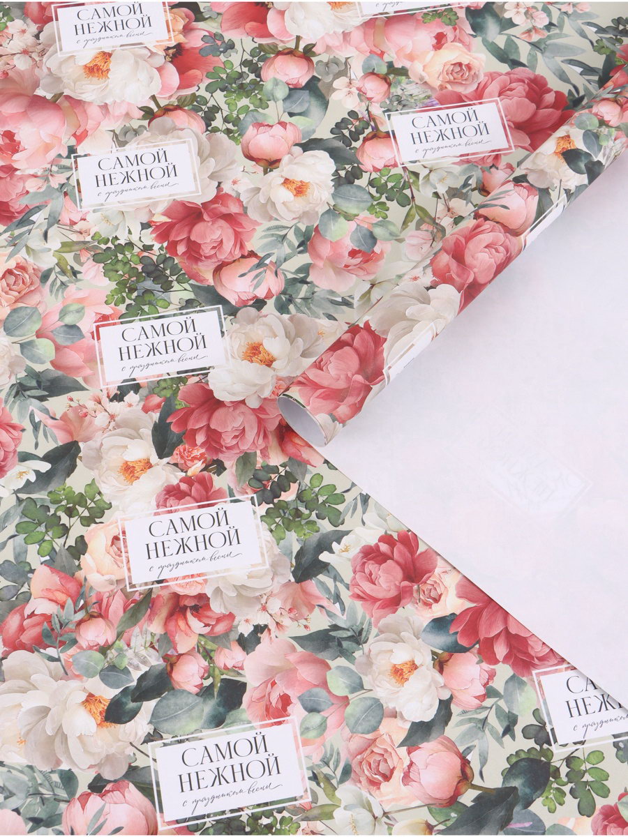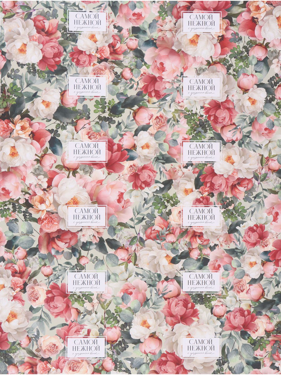 Бумага упаковочная "Цветы", 70 x 100 см, Дарите Счастье, Россия