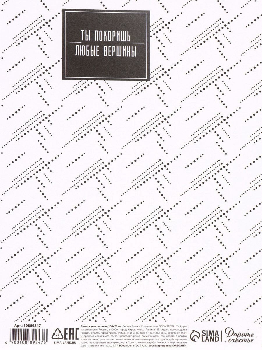 Бумага упаковочная "Паттерн", 70 x 100 см, Дарите Счастье, Россия