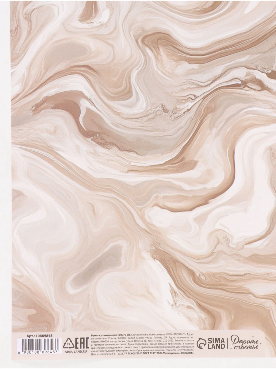 Бумага упаковочная "Мрамор", 70 x 100 см, Дарите Счастье, Россия