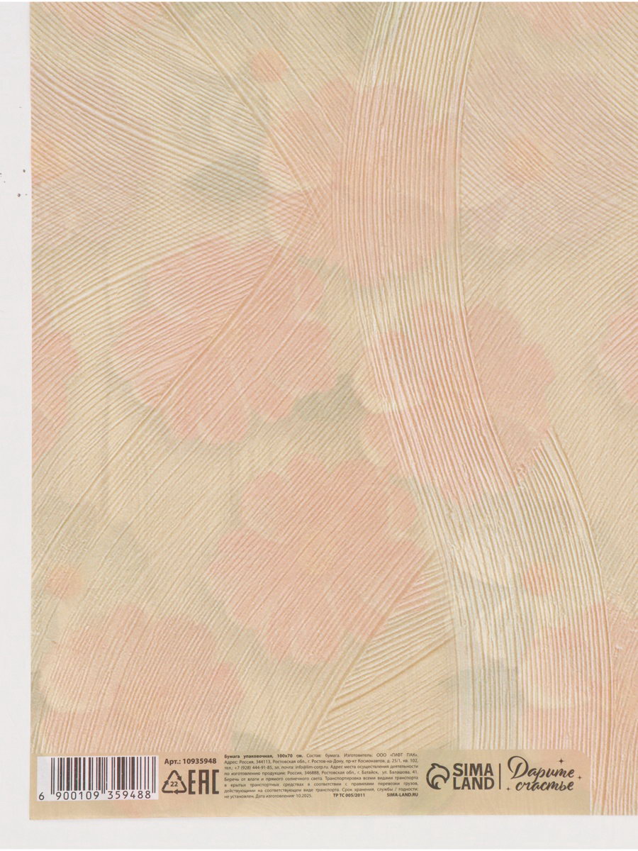 Цвет: Бежевый, Розовый Тематика праздника: 8 Марта, Универсальная тематика Размер упаковки: 0.4 x 0.4 x 70 см. tnved: 4811600000 Плотность, г/?2: 75 Размер, м: 0.7 x 1 Тематика: Цветочно-растительная Особенность крафта: Двухсторонний Дизайн: С рисунком, надписью Тип листа: Двусторонний Вид: В листах | ||