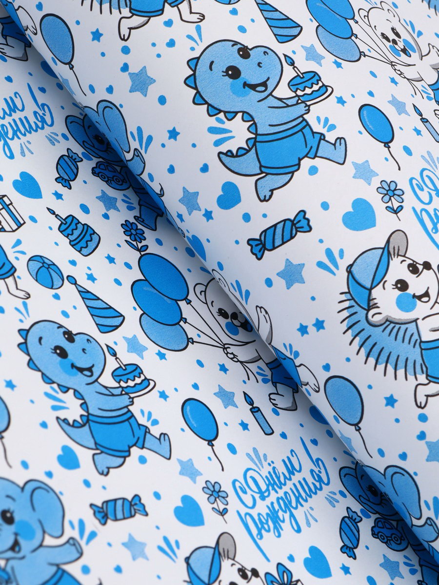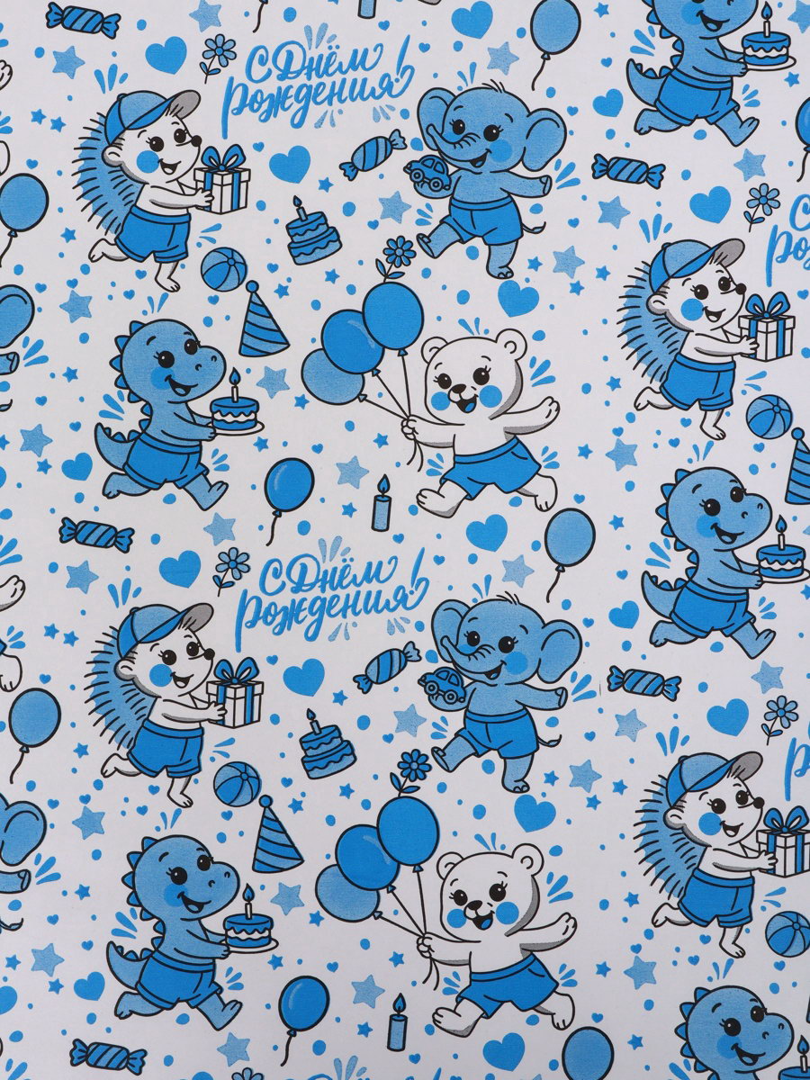 Бумага упаковочная крафт белый "С днём рождения!", белый/синий, 0.7 x 10+- 5% м, 60 гр, UPAK LAND, Россия