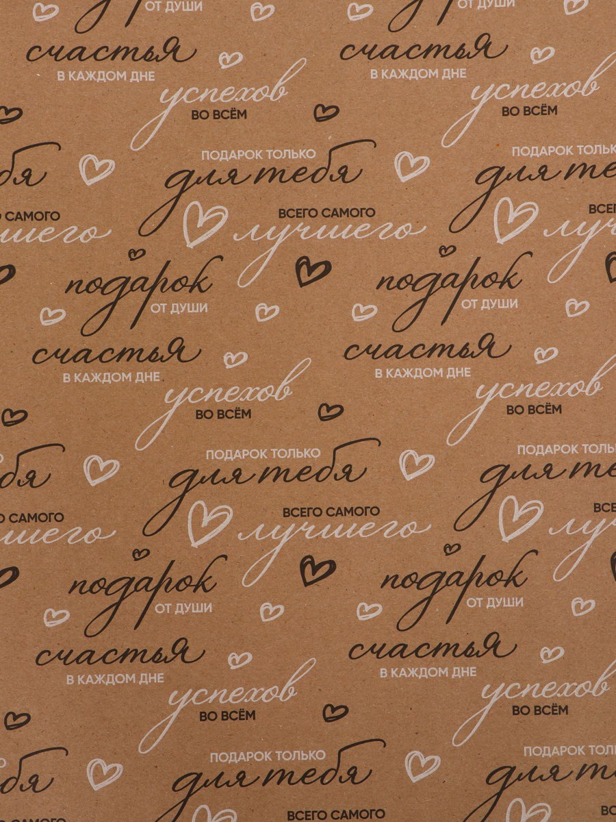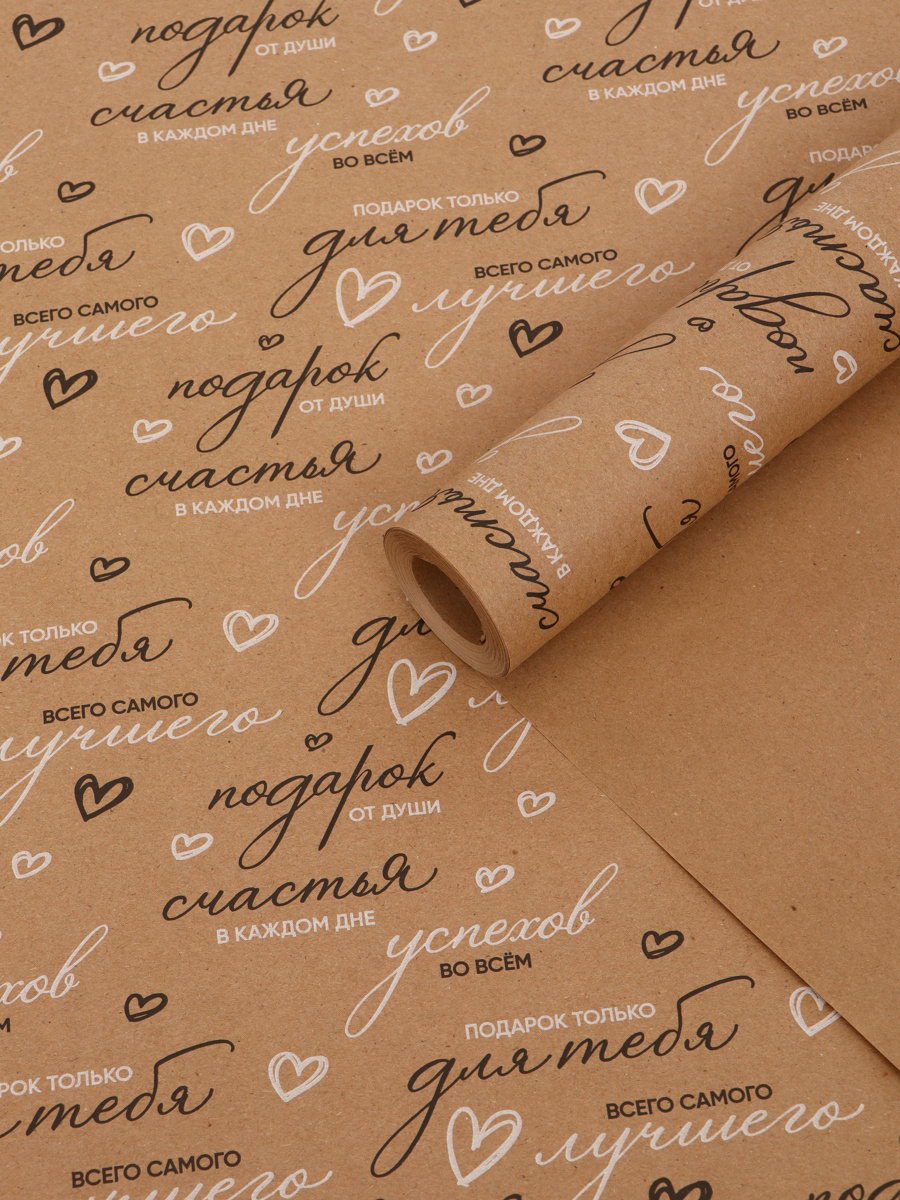 Бумага упаковочная крафт "Пожелания", черный/белый, 0.7 x 10+- 5% м, 60 гр, UPAK LAND, Россия