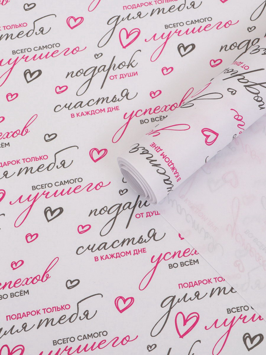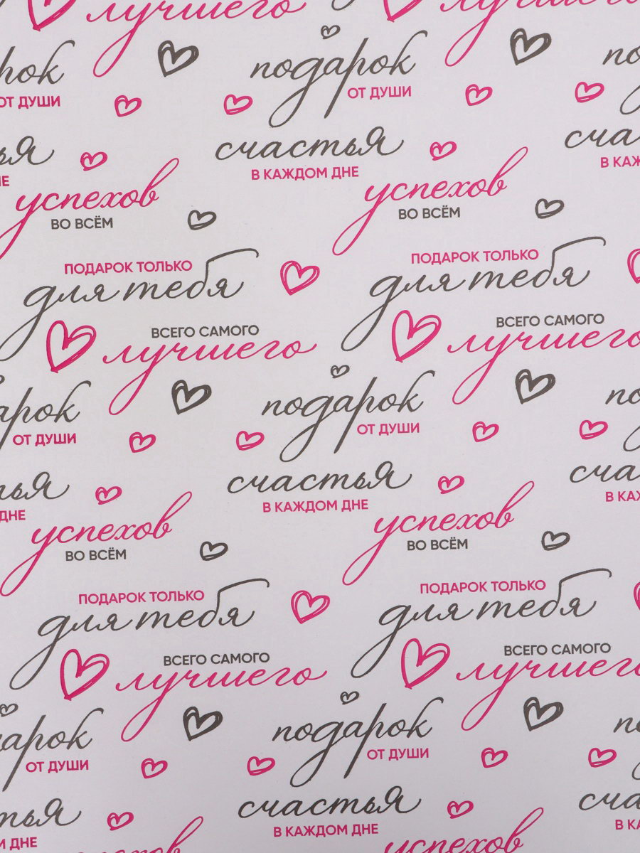 Бумага упаковочная крафт белый "Пожелания", черный/розовый, 0.7 x 10+- 5% м, 60 гр, UPAK LAND, Россия