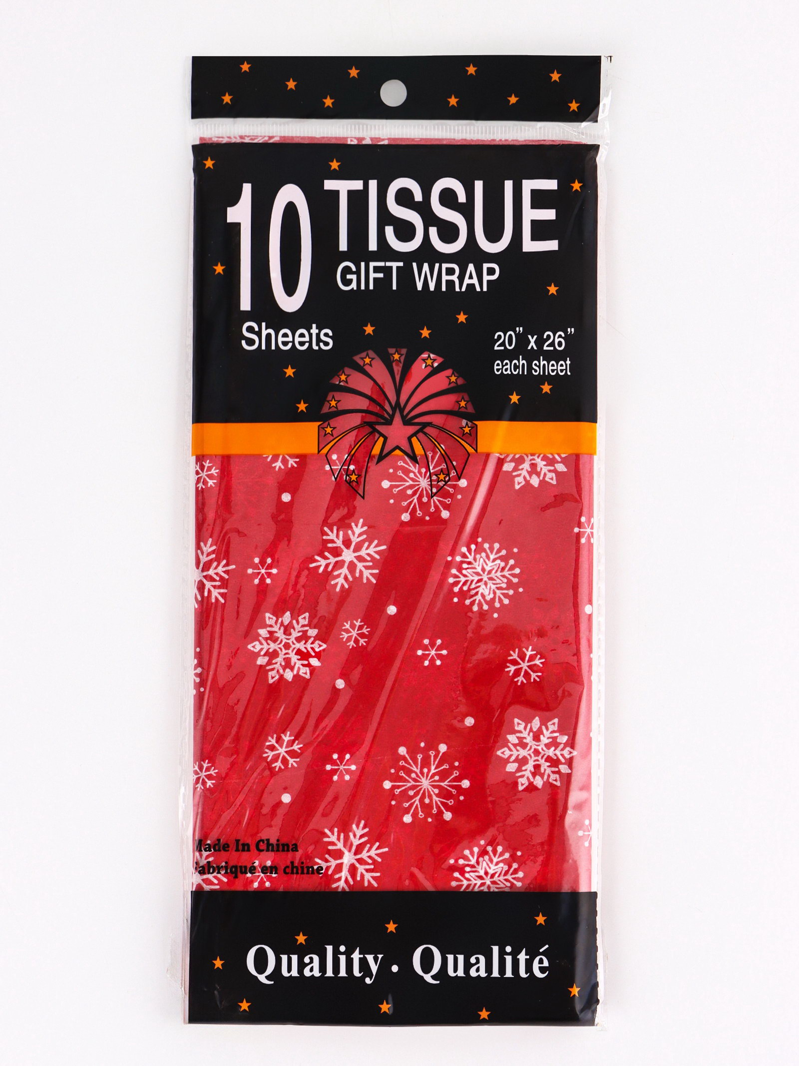 Бумага новогодняя упаковочная тишью "Снежинки на красном", красная, 50x66 см, UPAK LAND, Китай