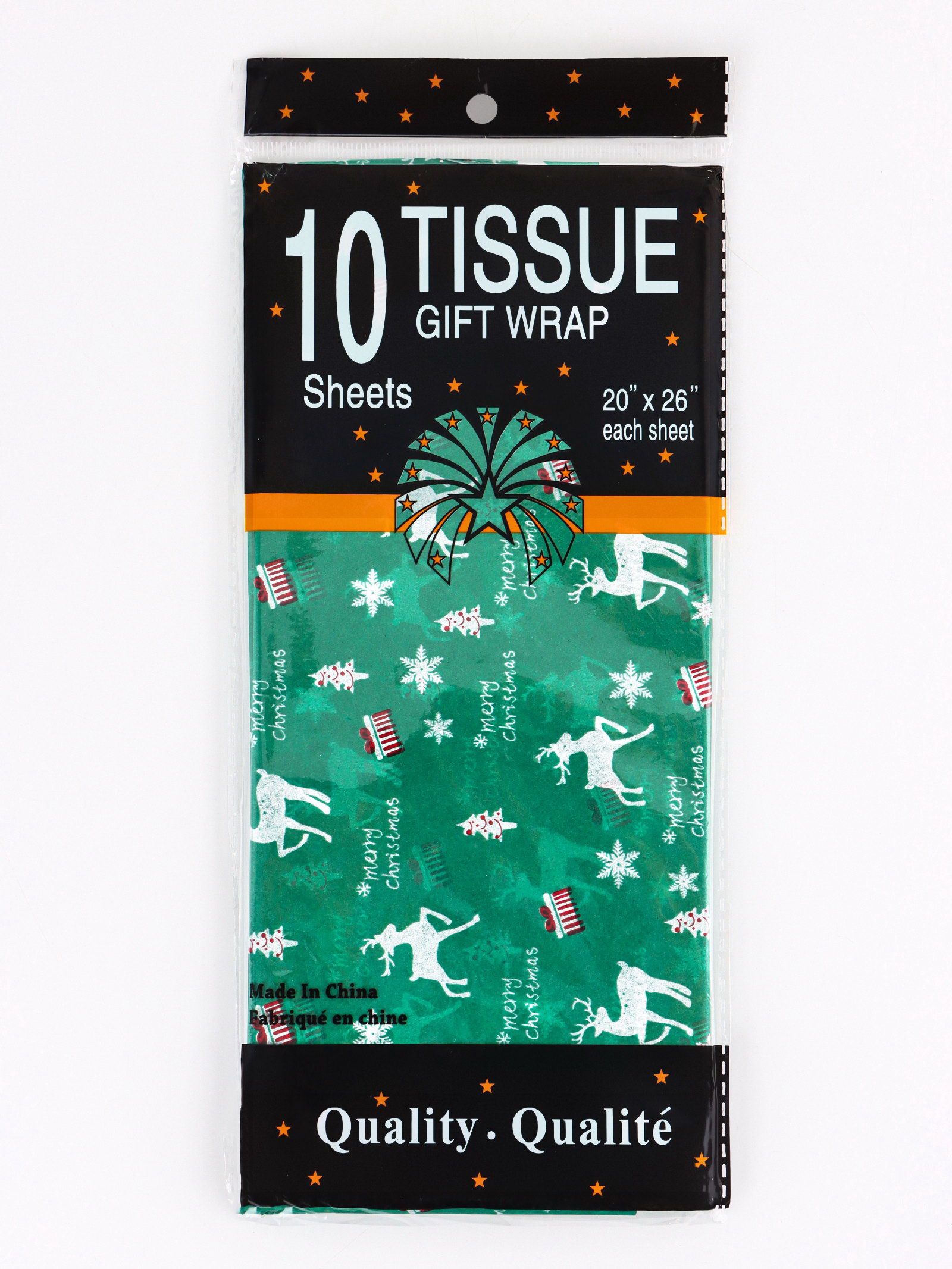 Бумага новогодняя упаковочная тишью "Рождество", зелёная, 50x66 см, UPAK LAND, Китай