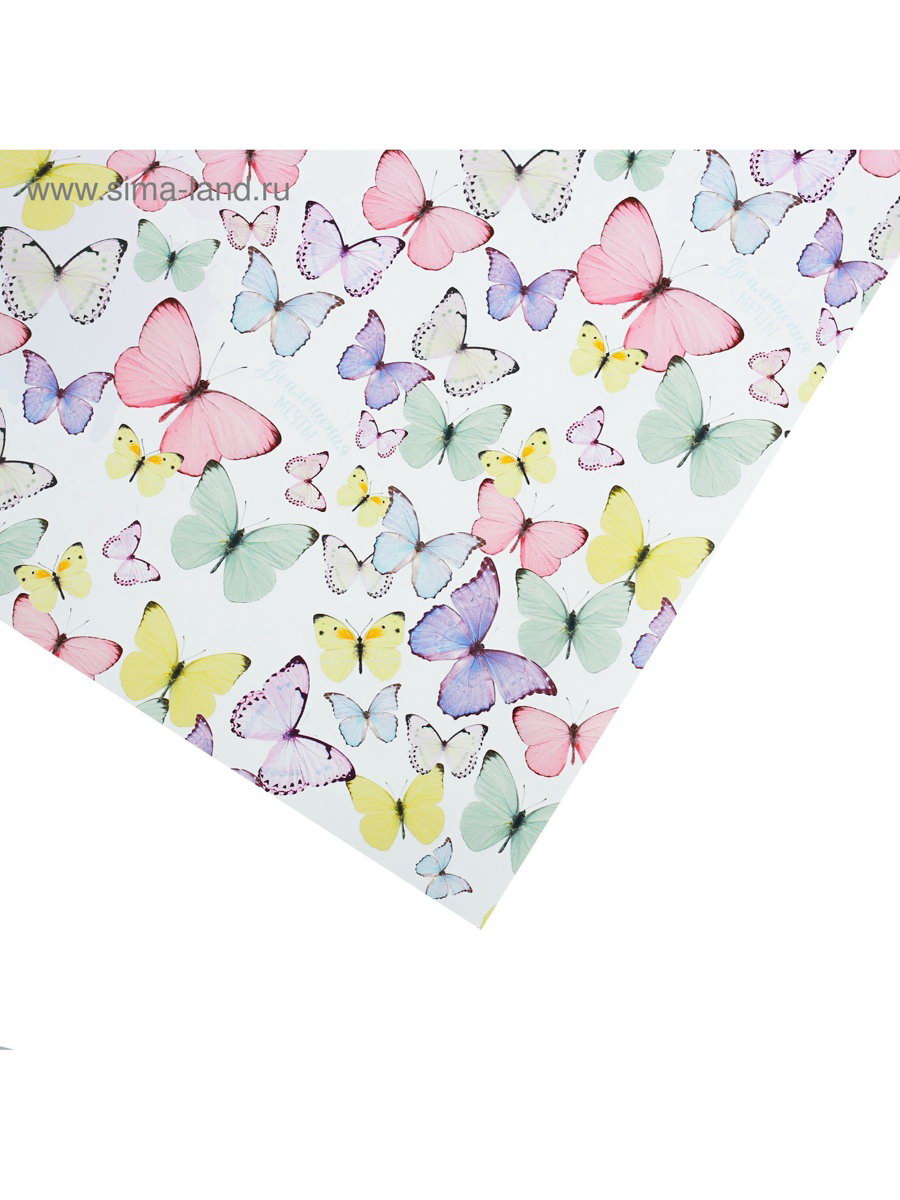 Бумага упаковочная глянцевая "Светлые бабочки", 70 x 100 см, Дарите Счастье, Россия