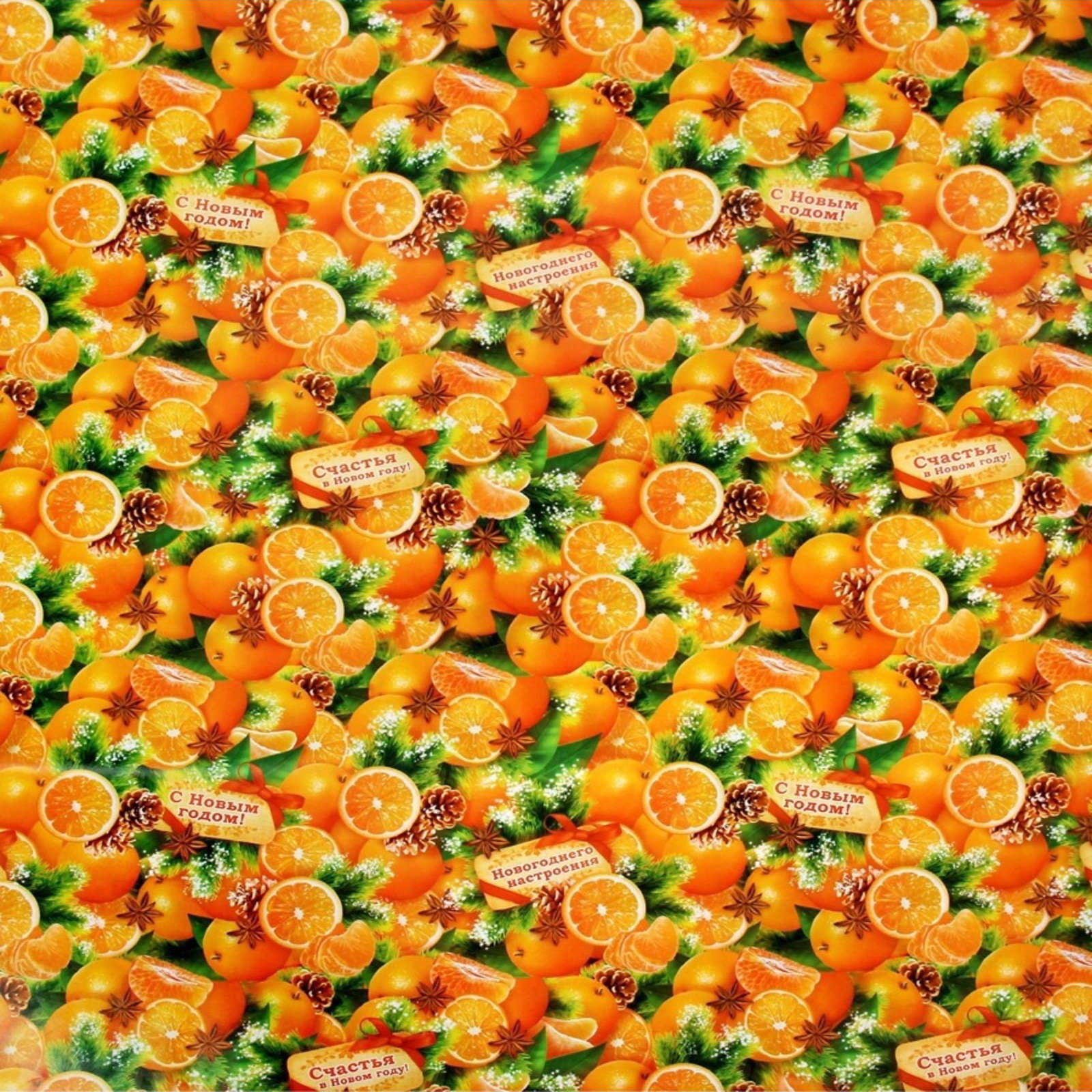 Упаковочная бумага на Новый год "Мандарины", 70x100 см, глянцевая, 0.1x70x100 см., Дарите Счастье, Россия
