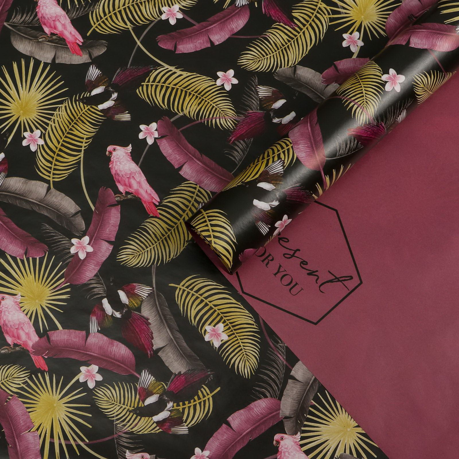Бумага упаковочная глянцевая двухсторонняя "Тропики", 70 x 100 см, Дарите Счастье, Россия