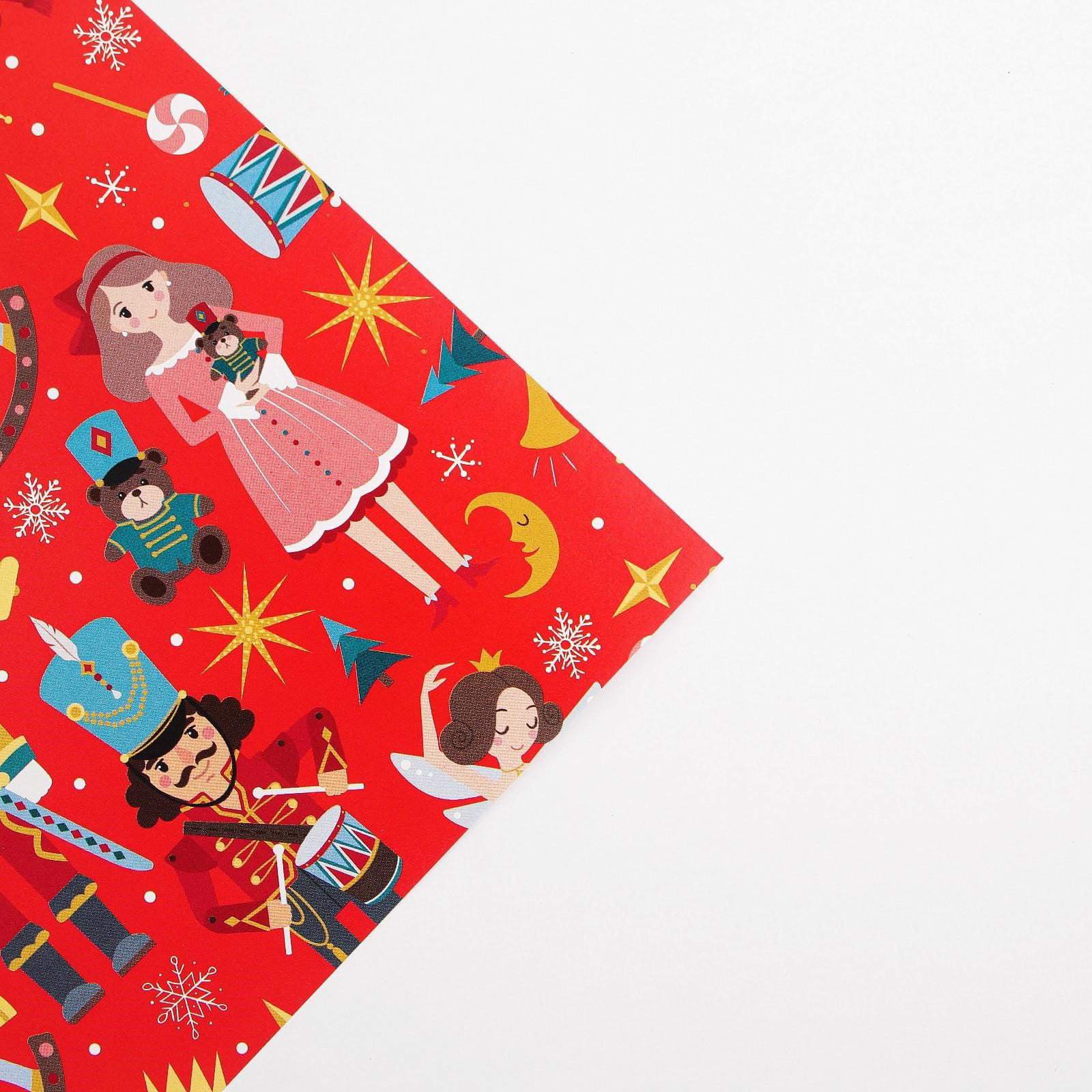 Упаковочная бумага на новый год "Щелкунчик", 70x100 см, глянцевая, Дарите Счастье, Россия