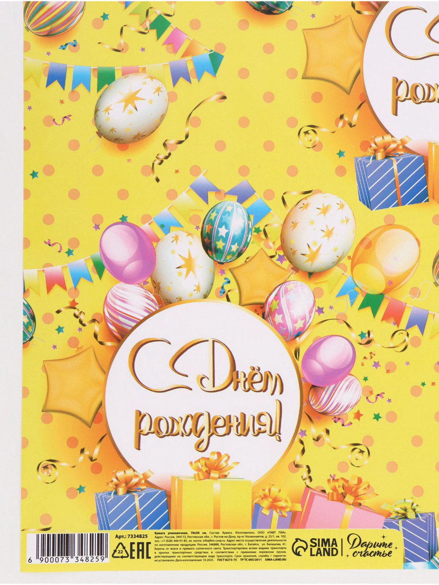 Бумага упаковочная глянцевая "С ДР", 60x40 см, Дарите Счастье, Россия