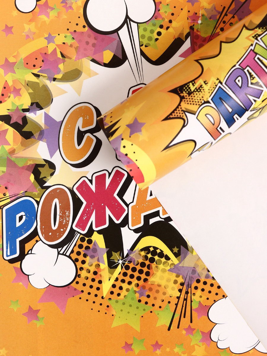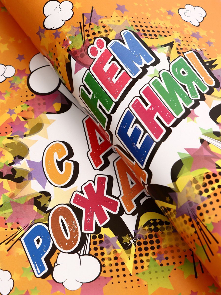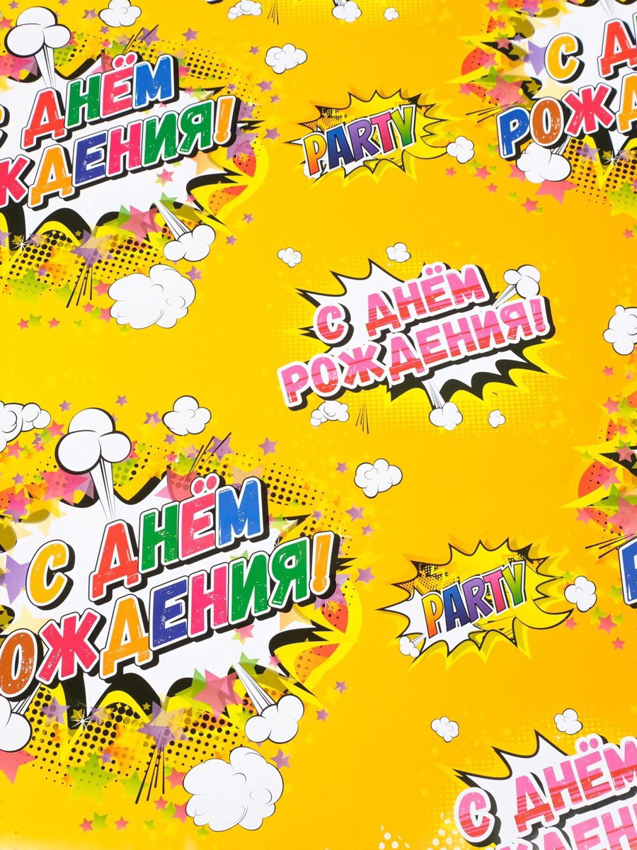 Бумага упаковочная глянцевая "С днём рождения!", 40x60 см, Дарите Счастье, Россия