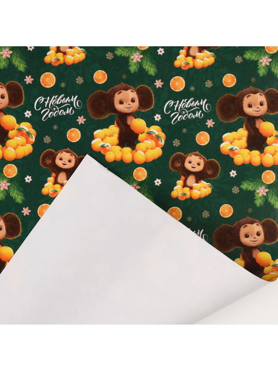 Бумага упаковочная "Новый год" 70 x 100 см, Чебурашка, ЧЕБУРАШКА, Россия