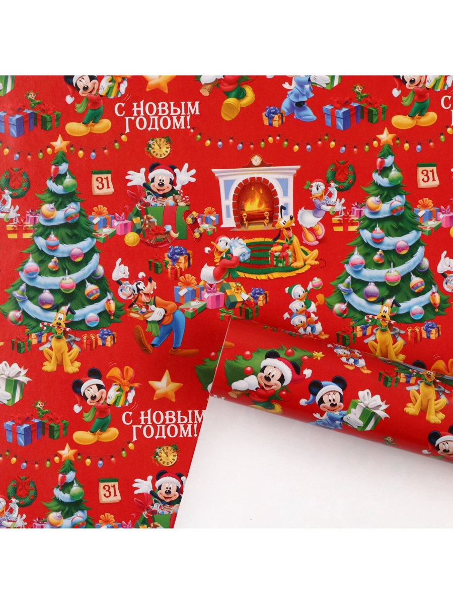 Упаковочная бумага новогодняя, 70 x 100 см, Микки Маус, Disney, Россия