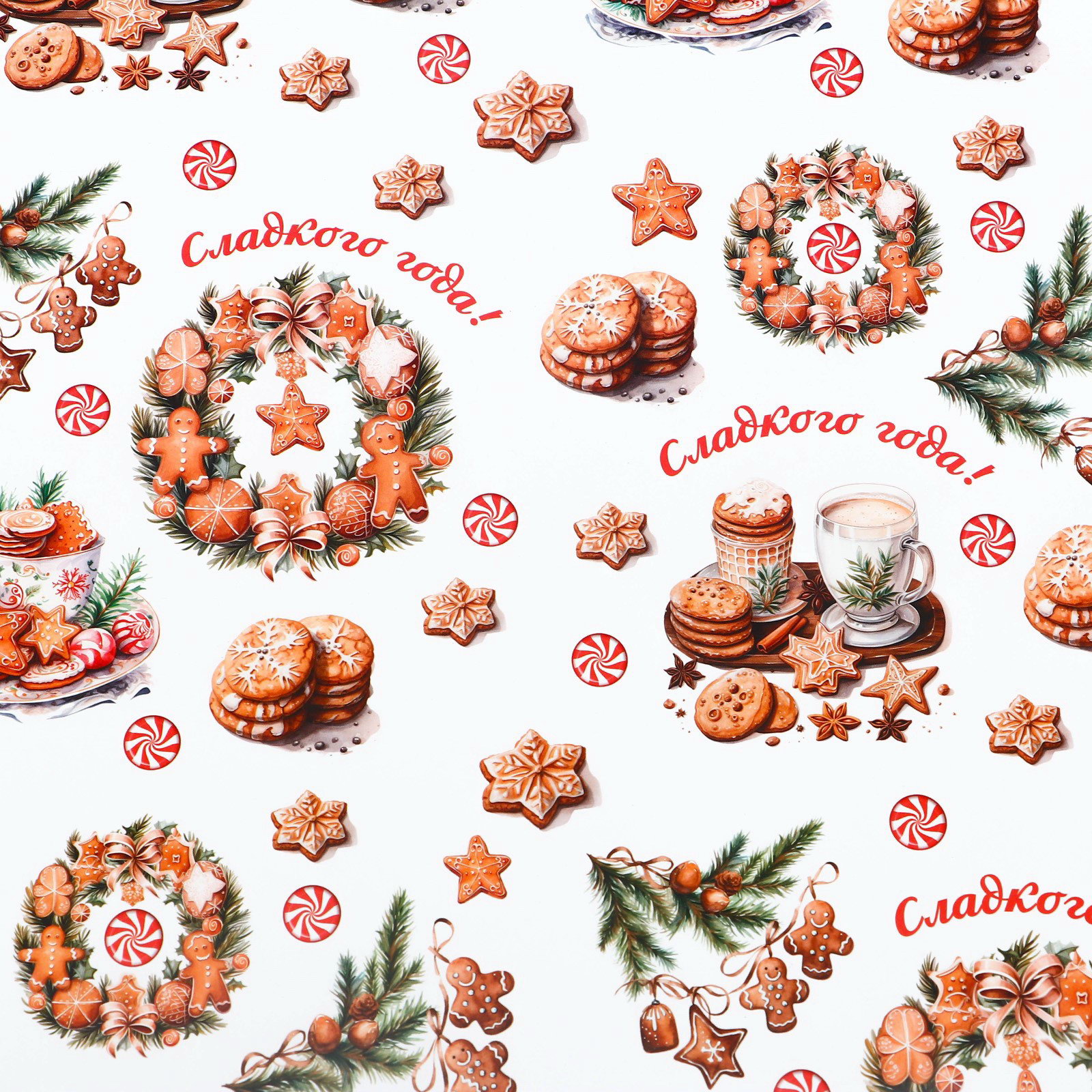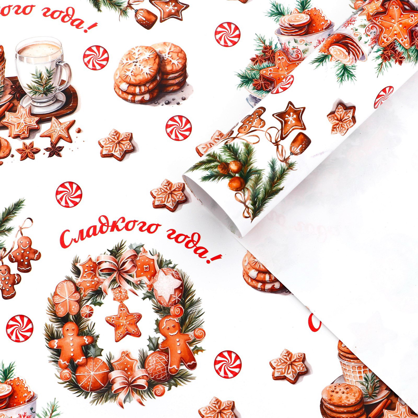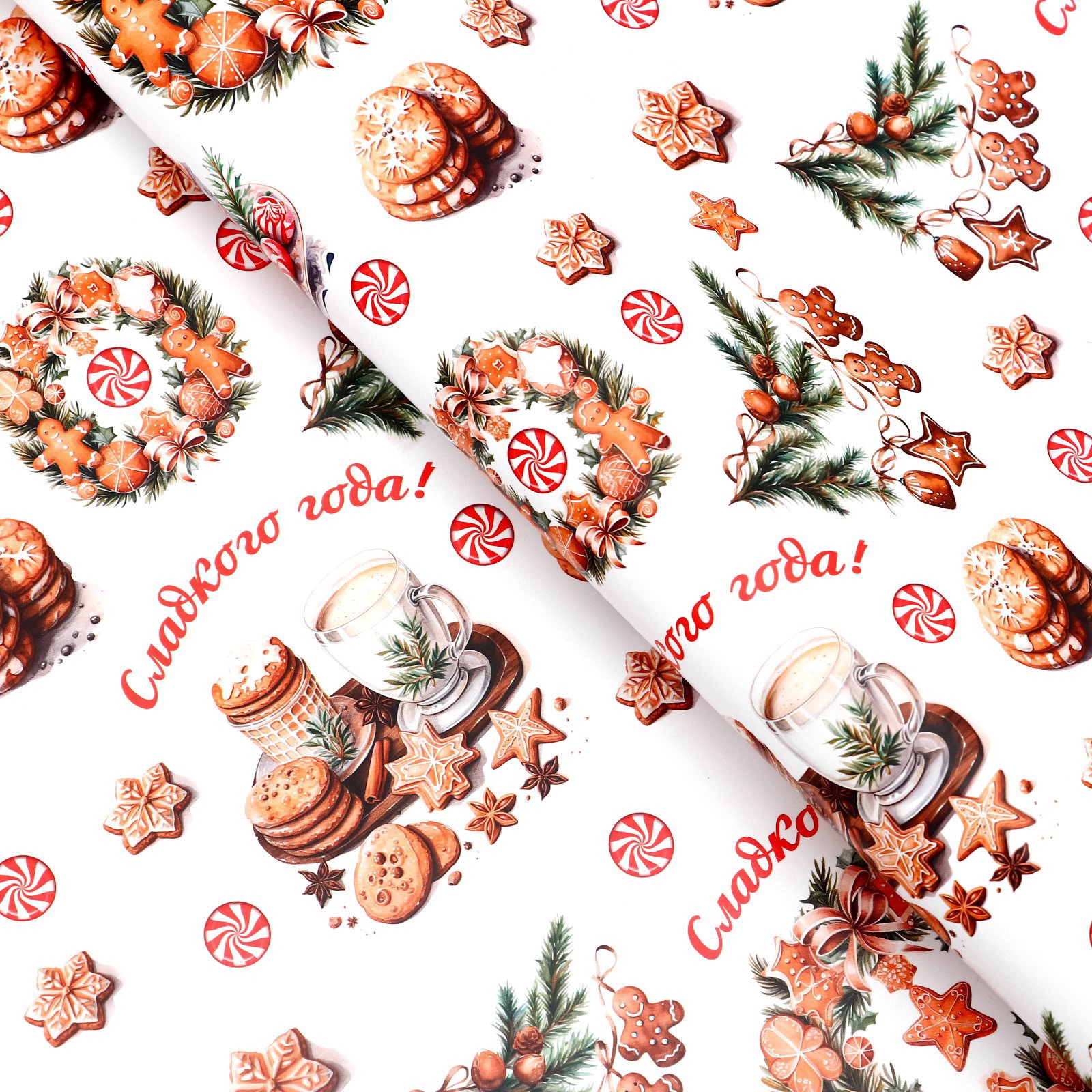 Бумага упаковочная новогодняя "Сладкого года", глянец, 80 г/?2, 50x70 см, UPAK LAND, Россия