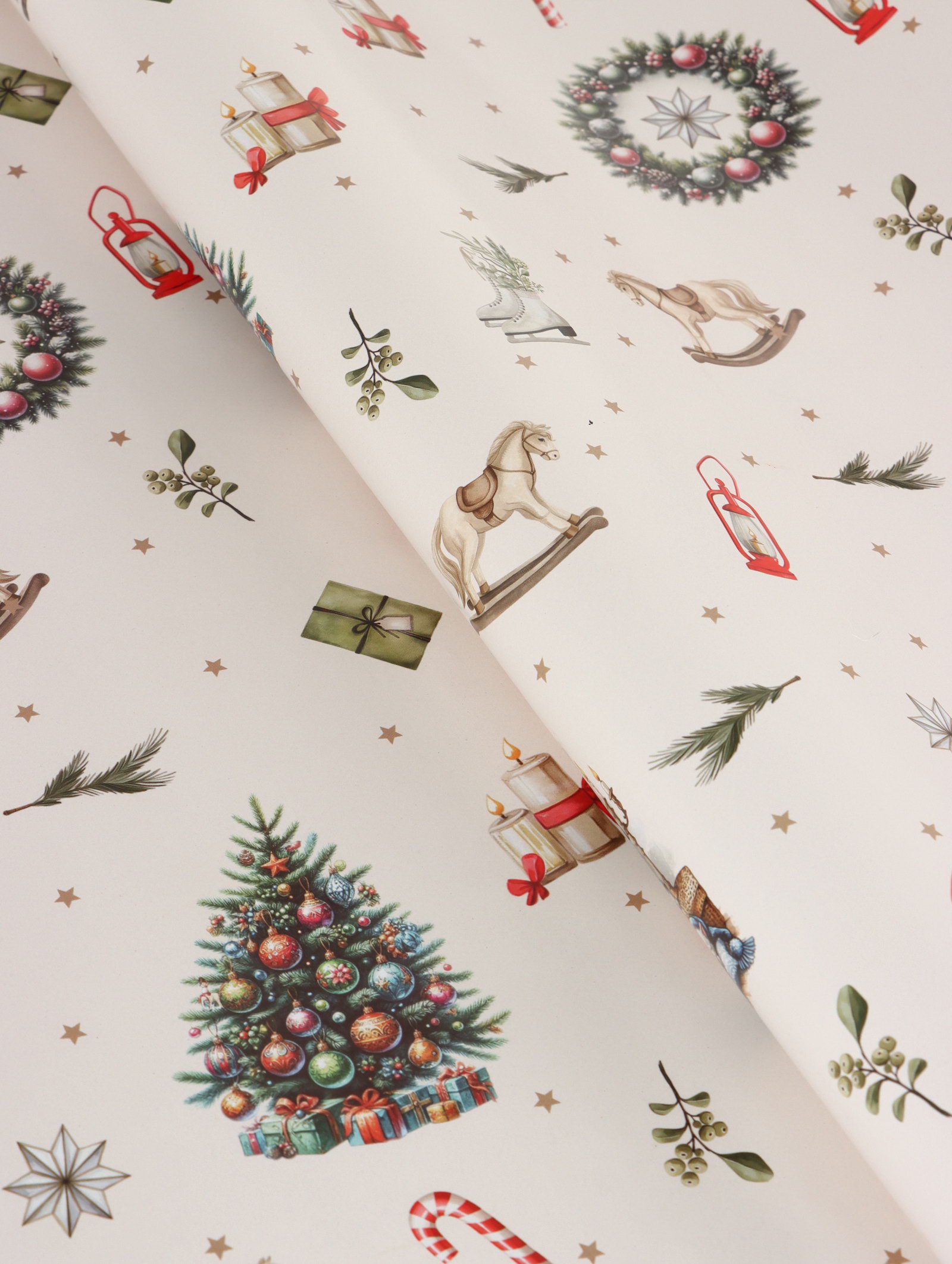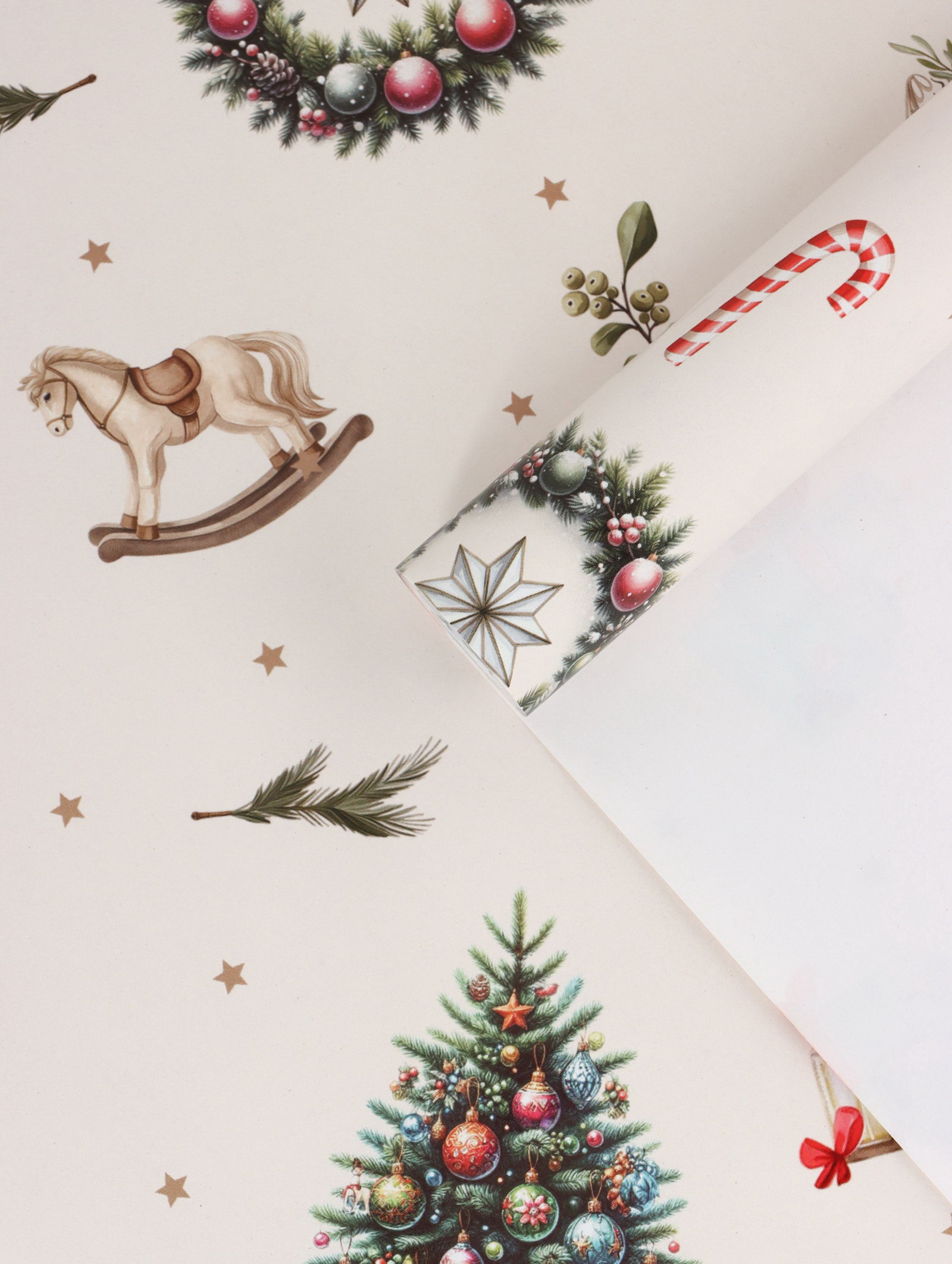 Для праздничных подарков: Бумага подходит для новогодних презентов любого размера от маленьких сувениров до крупных коробок. Бежевый цвет сочетается с золотыми и красными лентами, создавая стильное оформление. Просто разверните лист, оберните подарок и закрепите декор праздничный вид готов. | ||