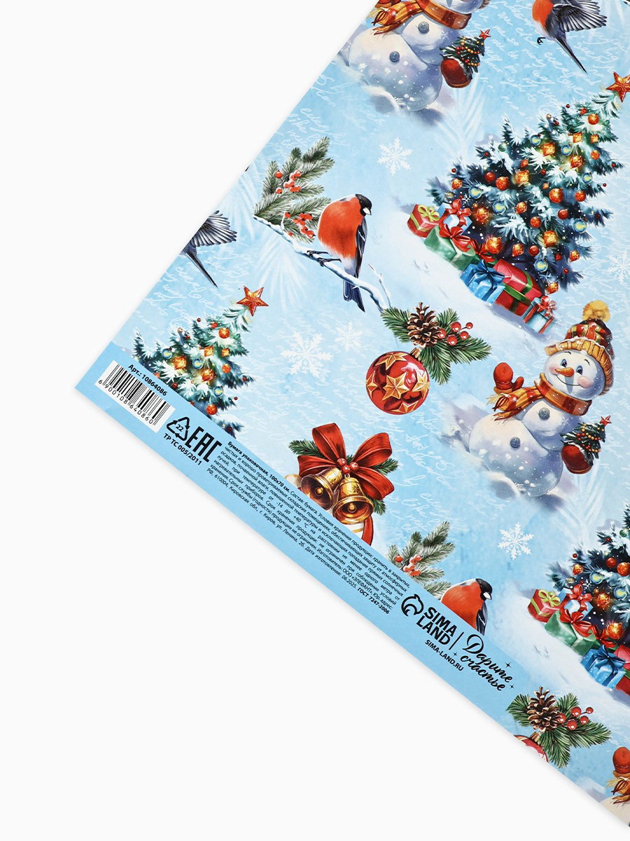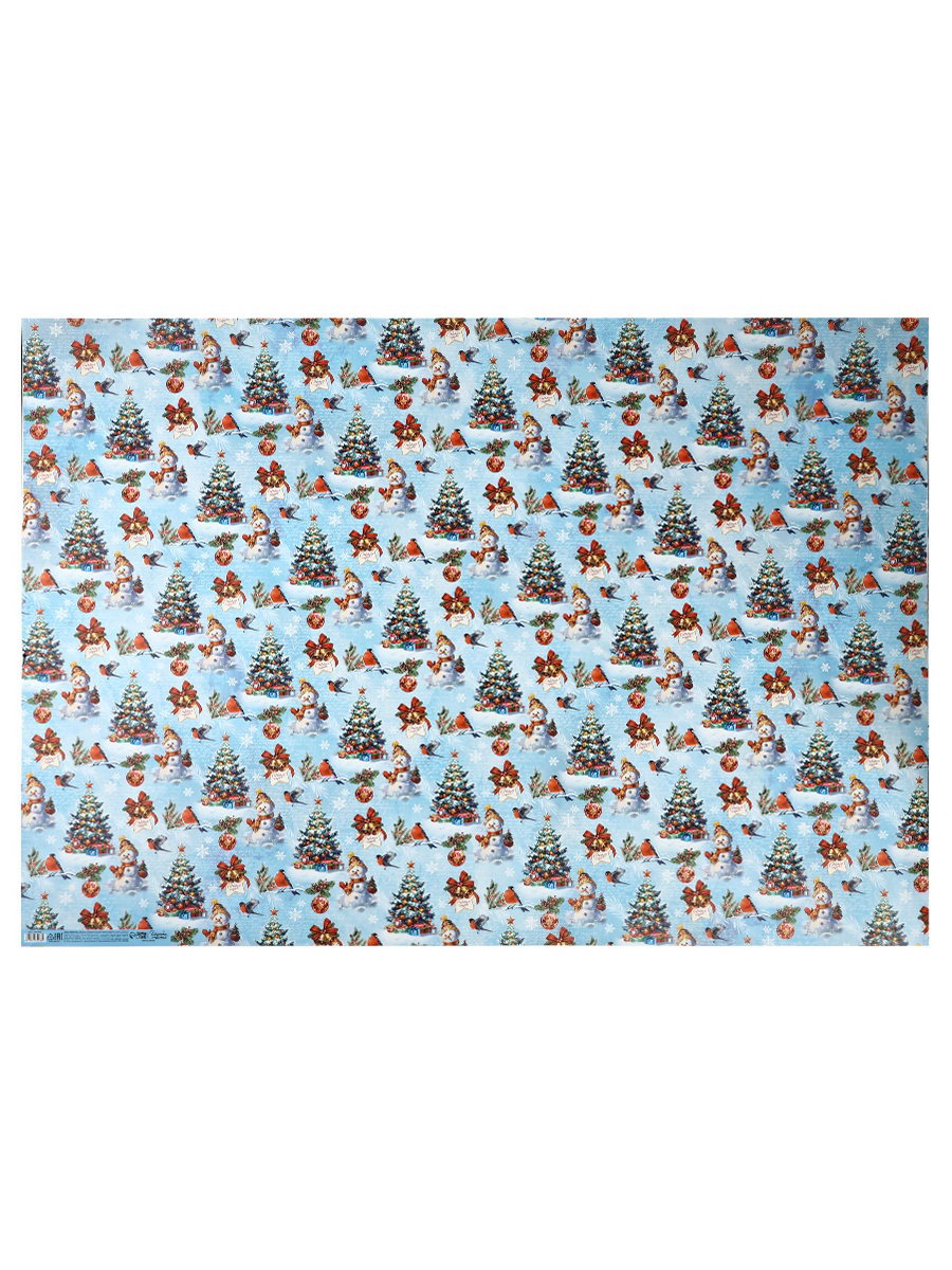 Бумага упаковочная новогодняя глянцевая "Снеговичок", 70x100 см, Дарите Счастье, Россия