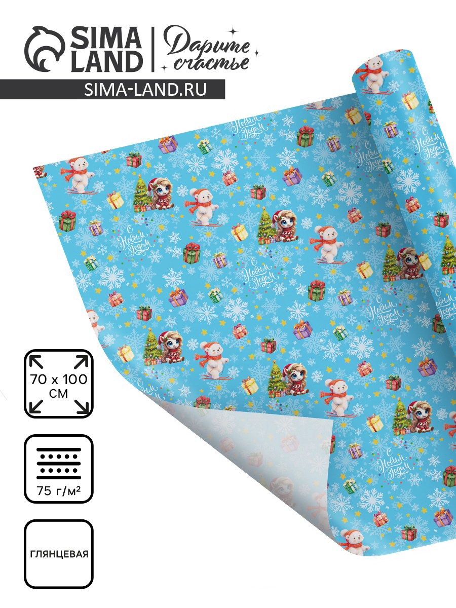 Бумага упаковочная глянцевая "Новый год 2026", лошадь, 70x100 см, Дарите Счастье, Россия