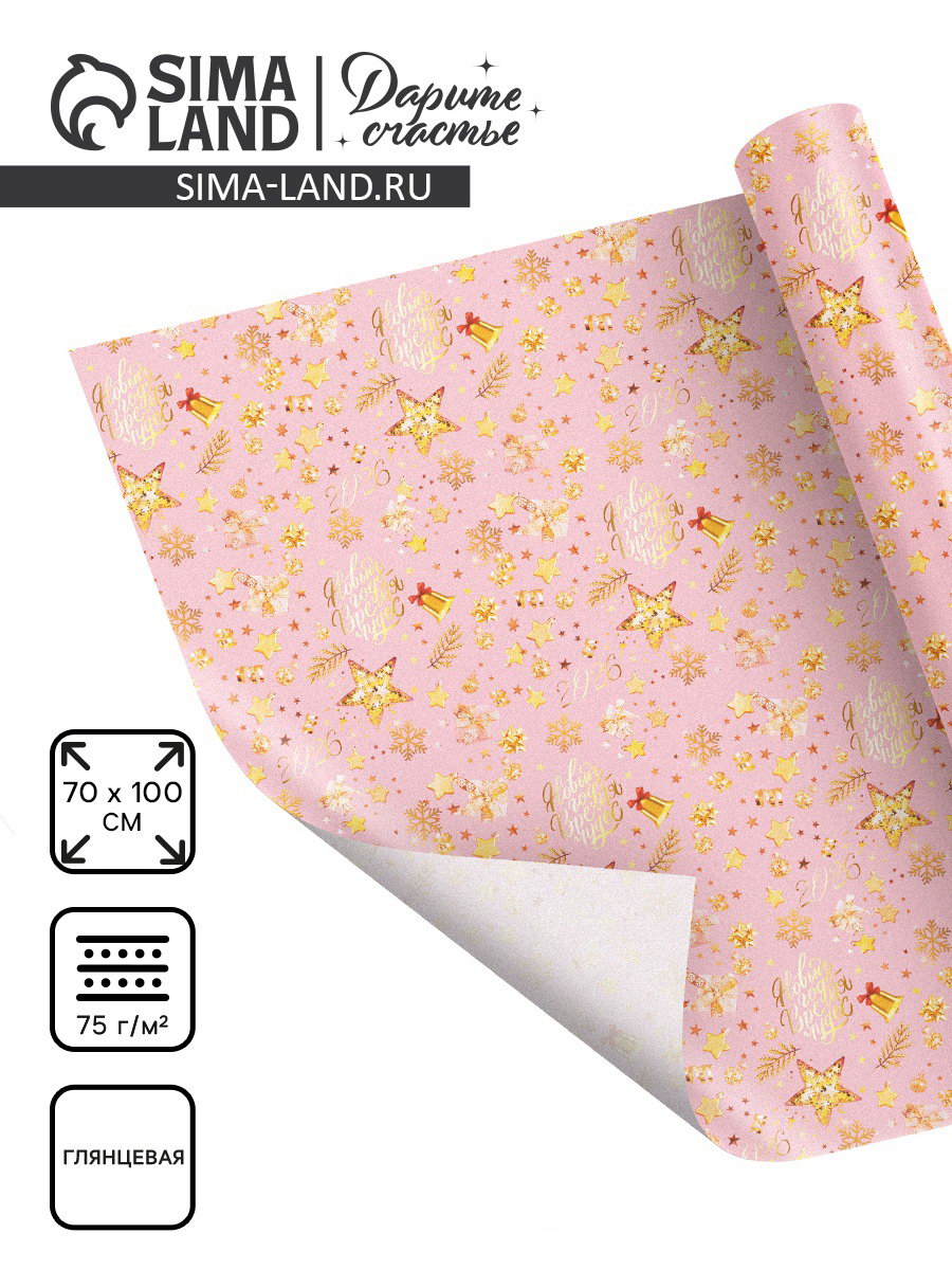 Бумага упаковочная глянцевая "Новый год 2026", 70x100 см, Дарите Счастье, Россия