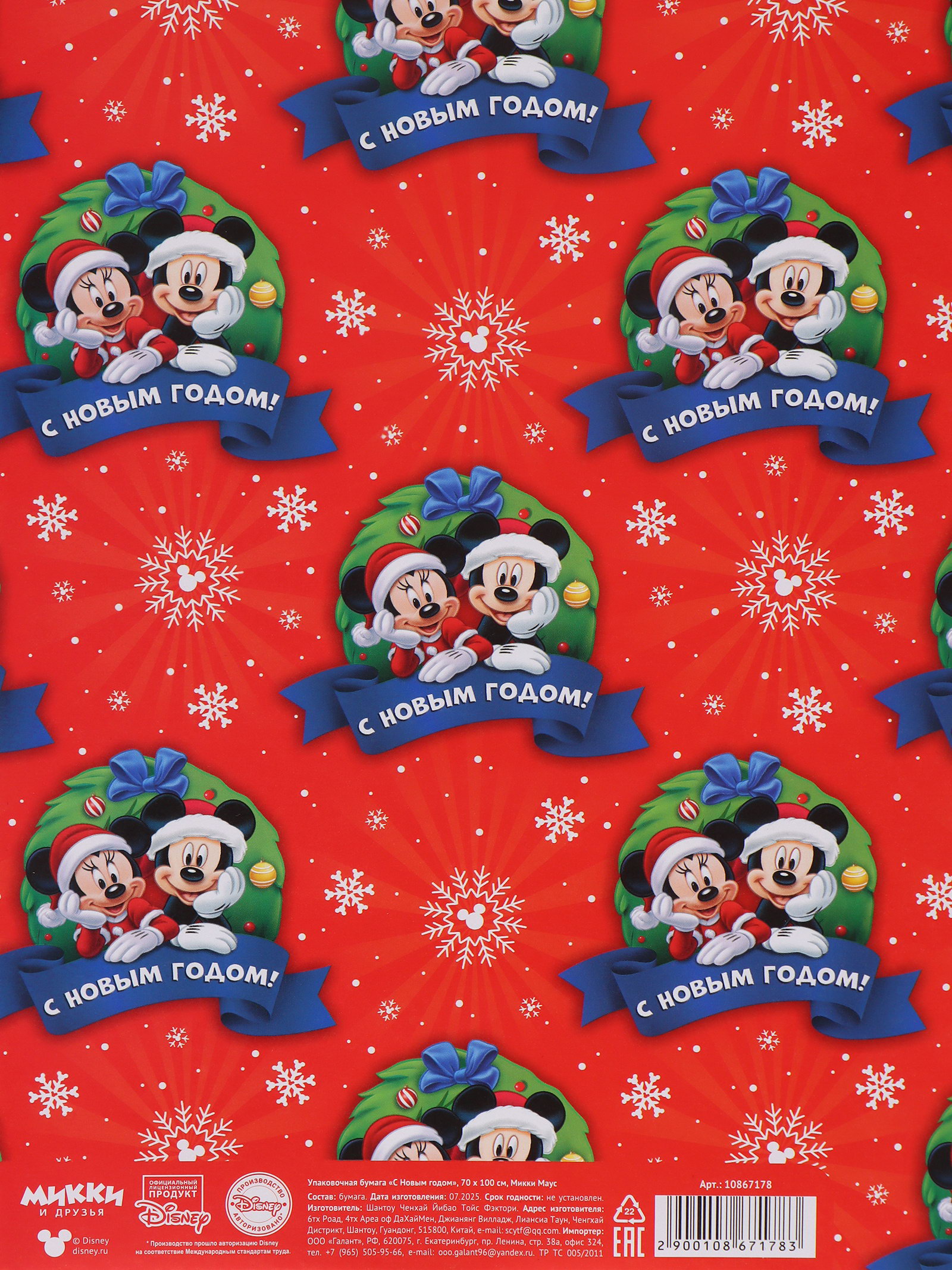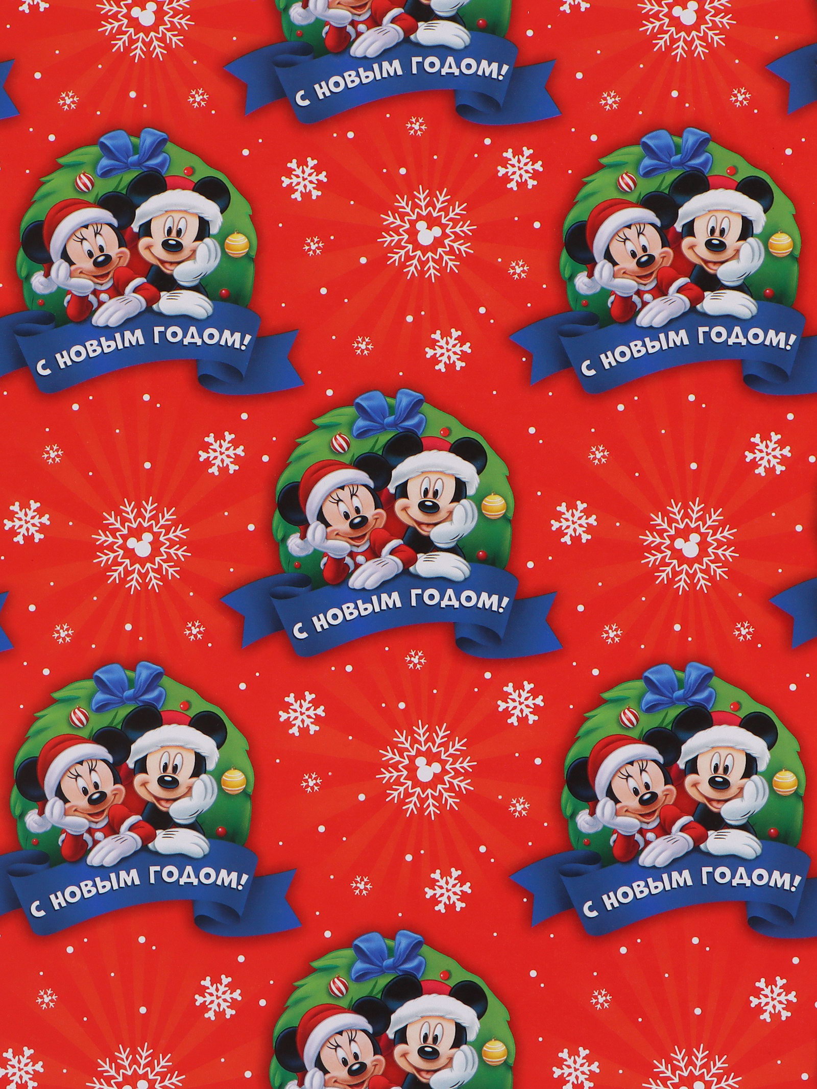 Бумага упаковочная глянцевая "Весёлого Нового года", 70x100 см, Disney, Россия
