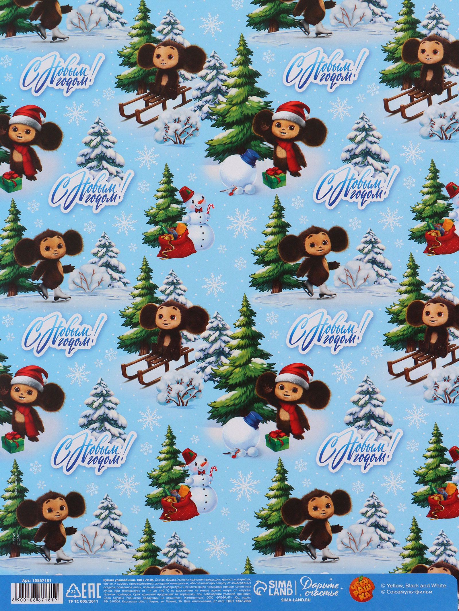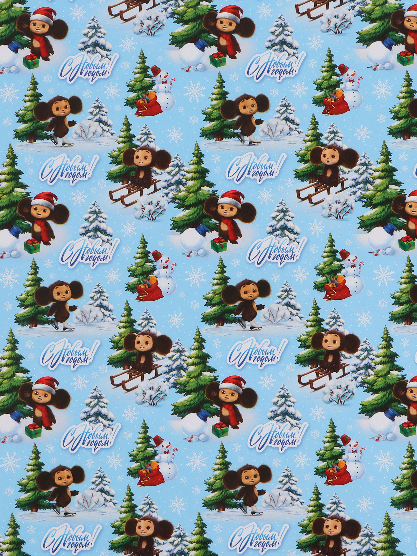 Бумага упаковочная глянцевая "С Новым годом", 70x100 см, Чебурашка, ЧЕБУРАШКА, Россия