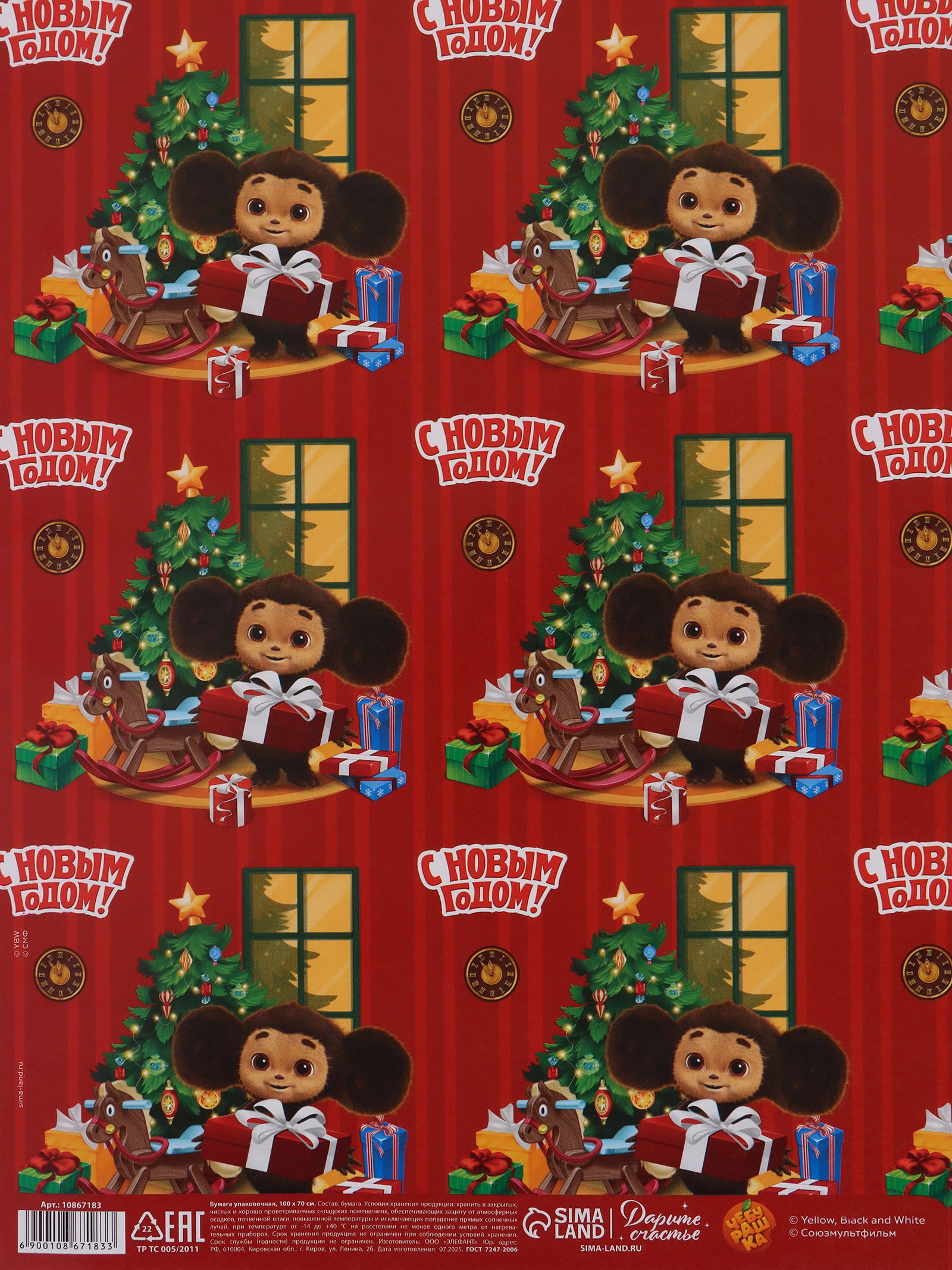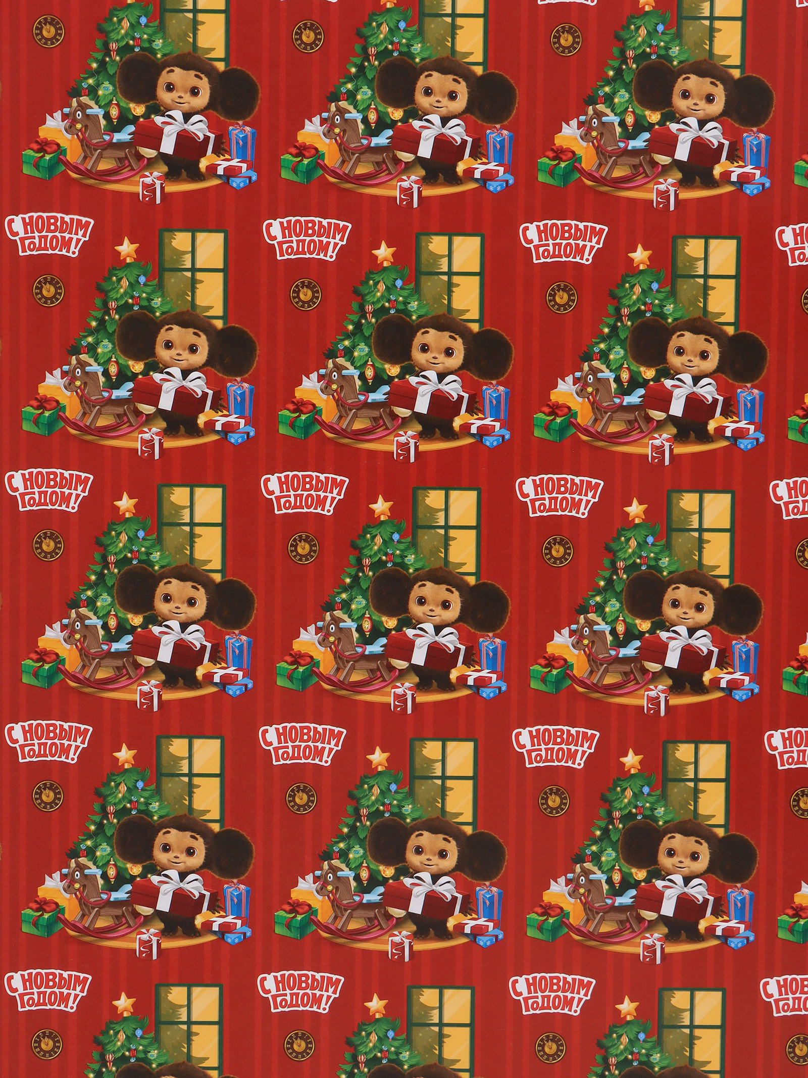 Бумага упаковочная глянцевая "Новый год 2026", лошадка качалка, 70x100 см, Чебурашка, ЧЕБУРАШКА, Россия