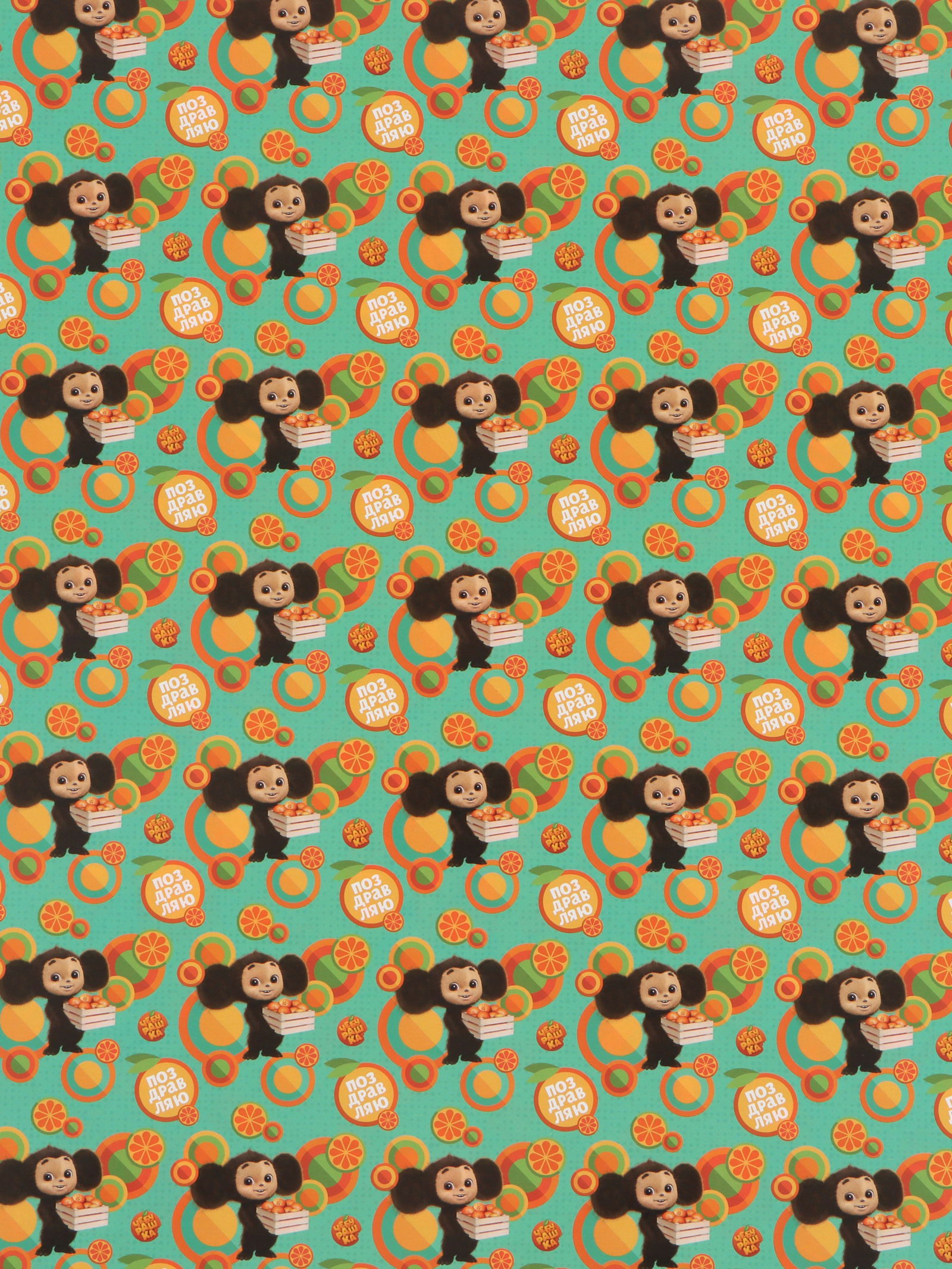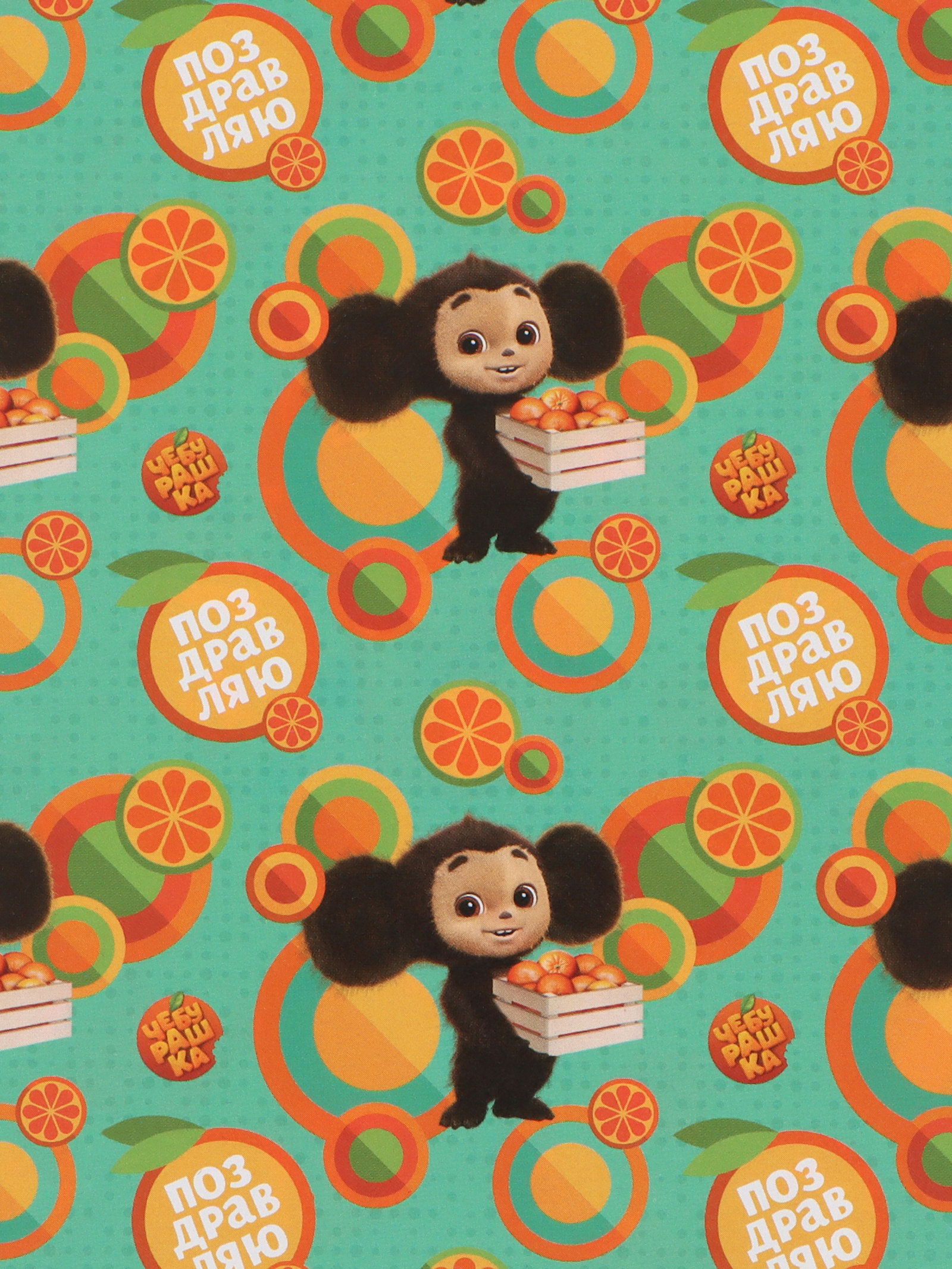 Бумага упаковочная глянцевая двусторонняя "Чебурашка", 70x100 см, ЧЕБУРАШКА, Россия