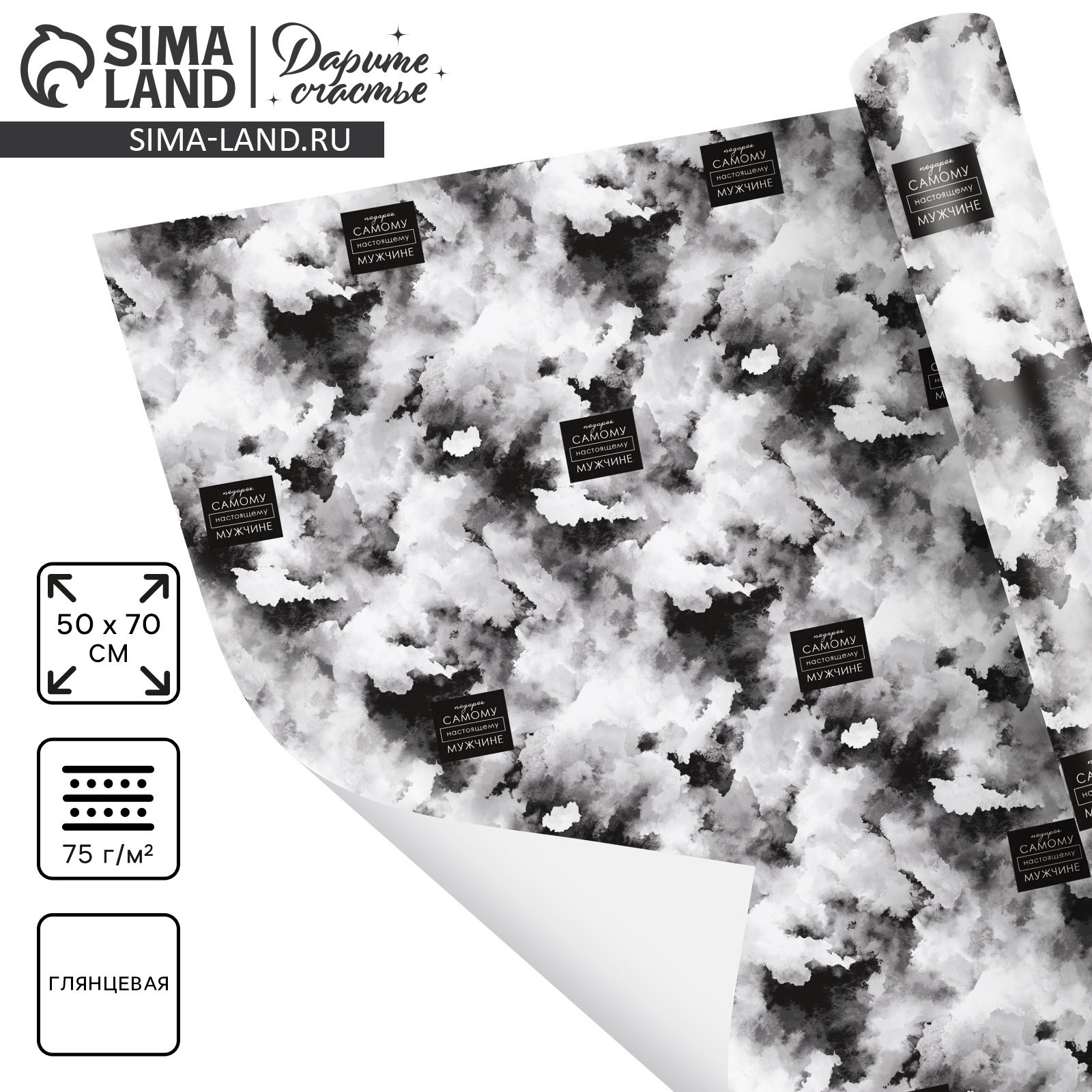 Бумага упаковочная глянцевая "Самому настоящему мужчине", 70 x 100 см, Дарите Счастье, Россия