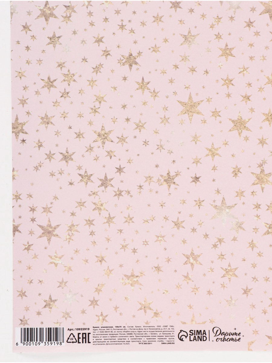 Бумага упаковочная глянцевая "Звёзды", 70x100 см, Дарите Счастье, Россия