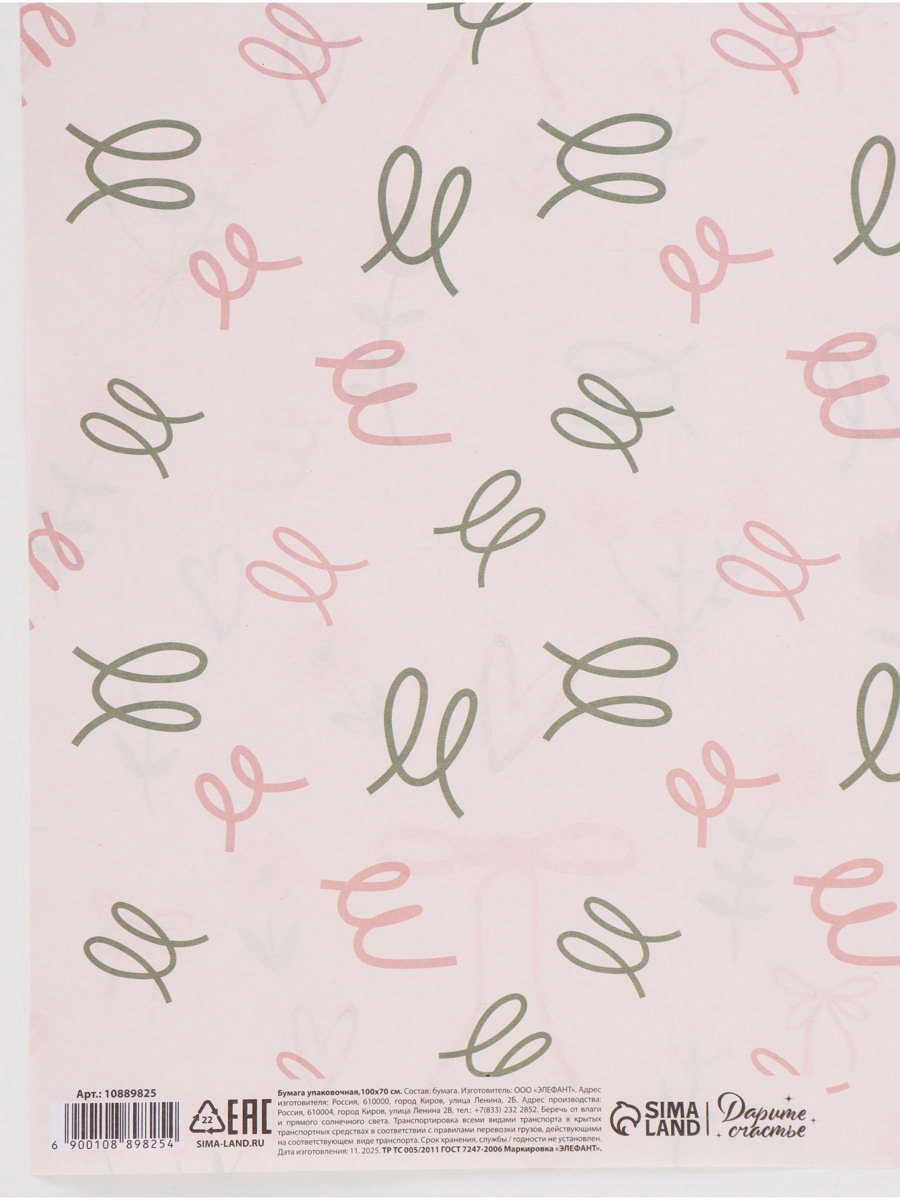Бумага упаковочная двухсторонняя "Банты", 70 x 100 см, Дарите Счастье, Россия