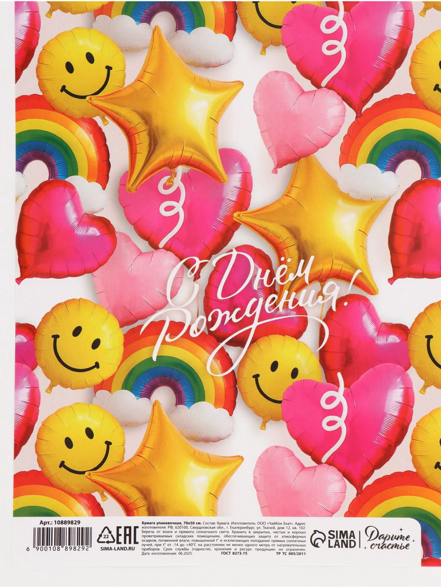 Бумага упаковочная глянцевая "Праздник", 50 x 70 см, Дарите Счастье, Россия