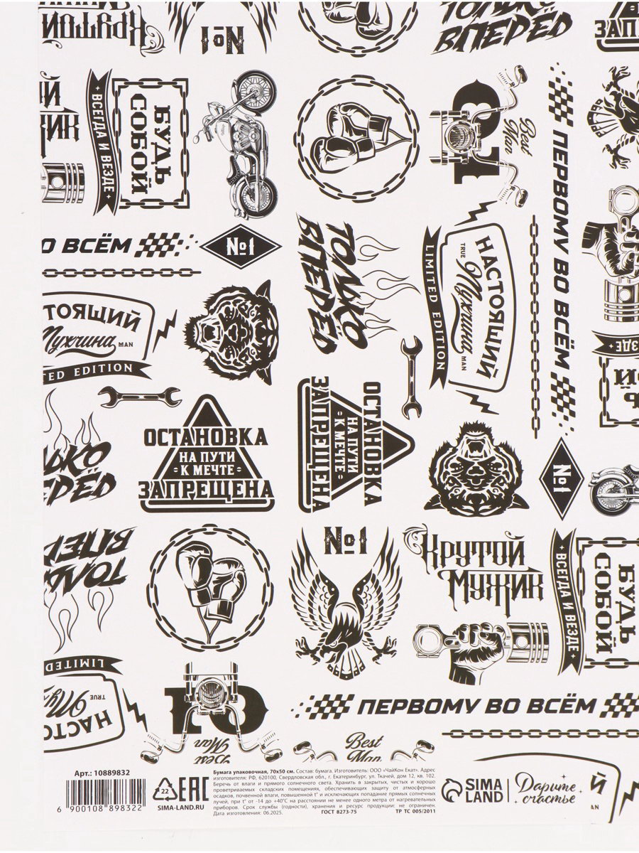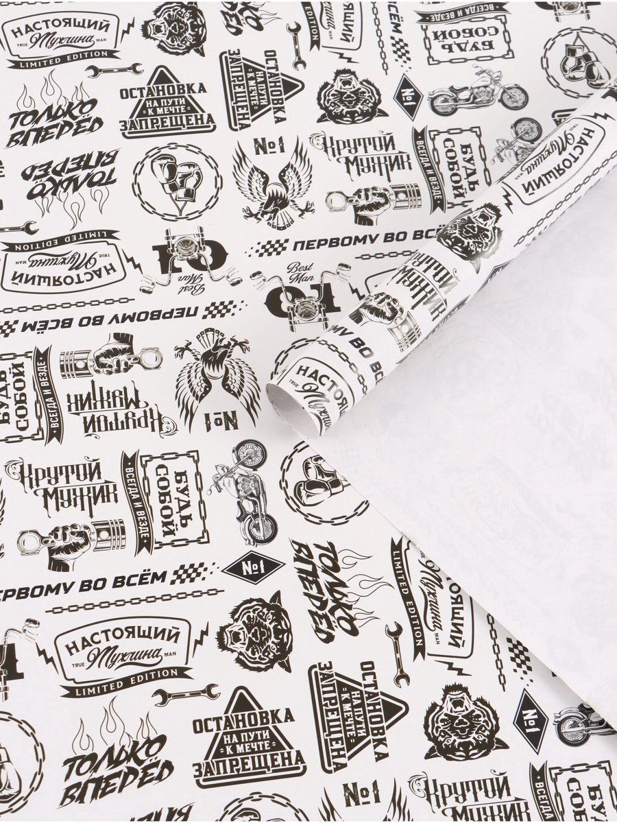 Бумага упаковочная глянцевая "Мужская", 50 x 70 см, Дарите Счастье, Россия