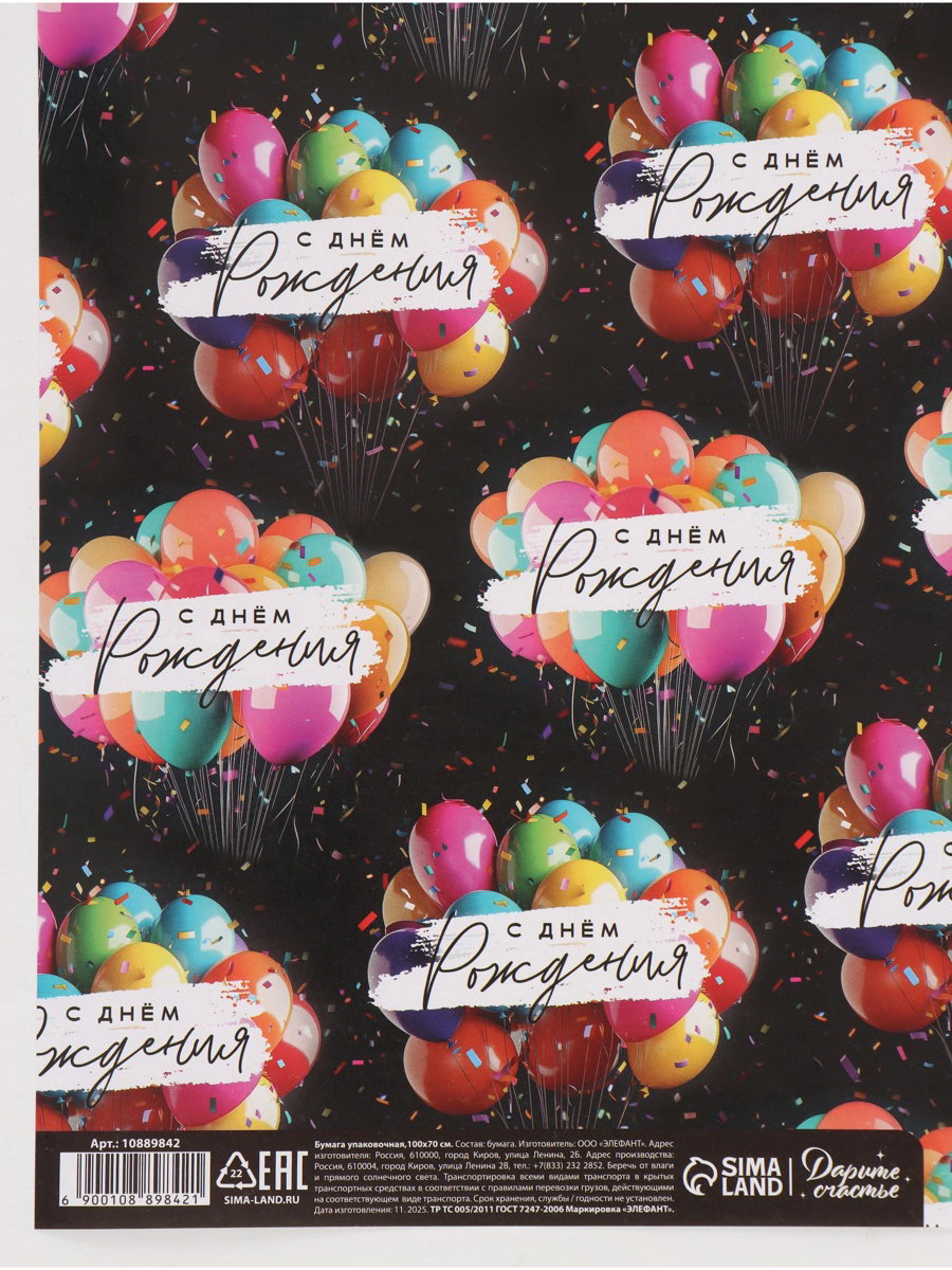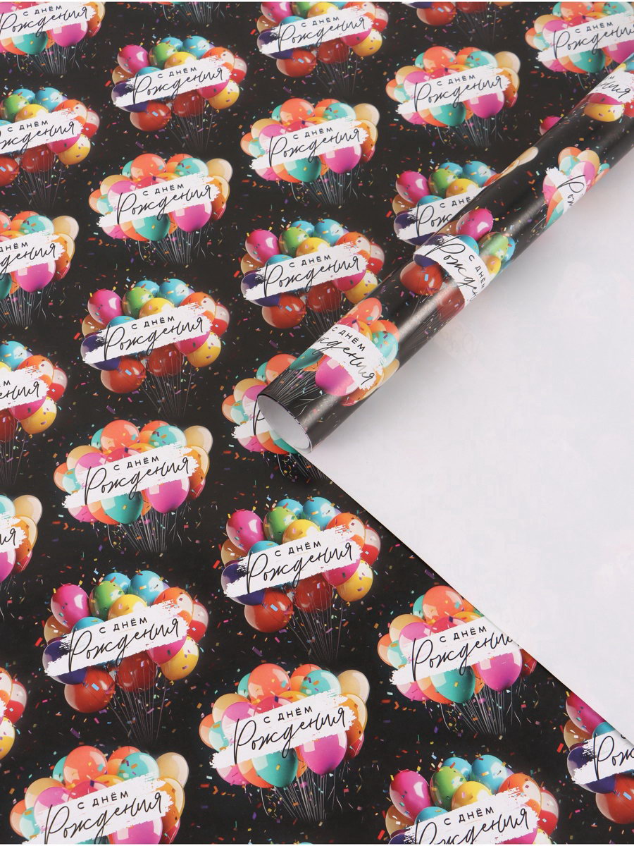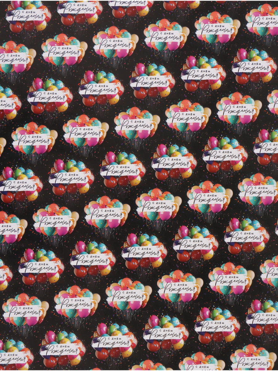 Бумага упаковочная глянцевая "С Днём рождения", шары, 70 x 100 см, Дарите Счастье, Россия