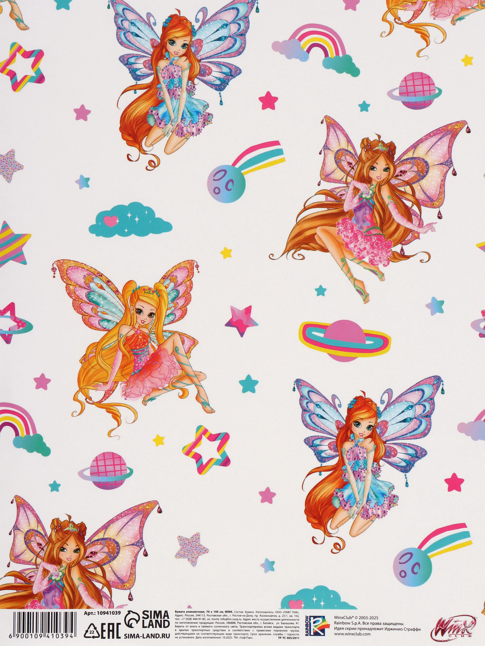 Бумага упаковочная глянцевая "Клуб Винкс", 70x100 см, WINX, Россия