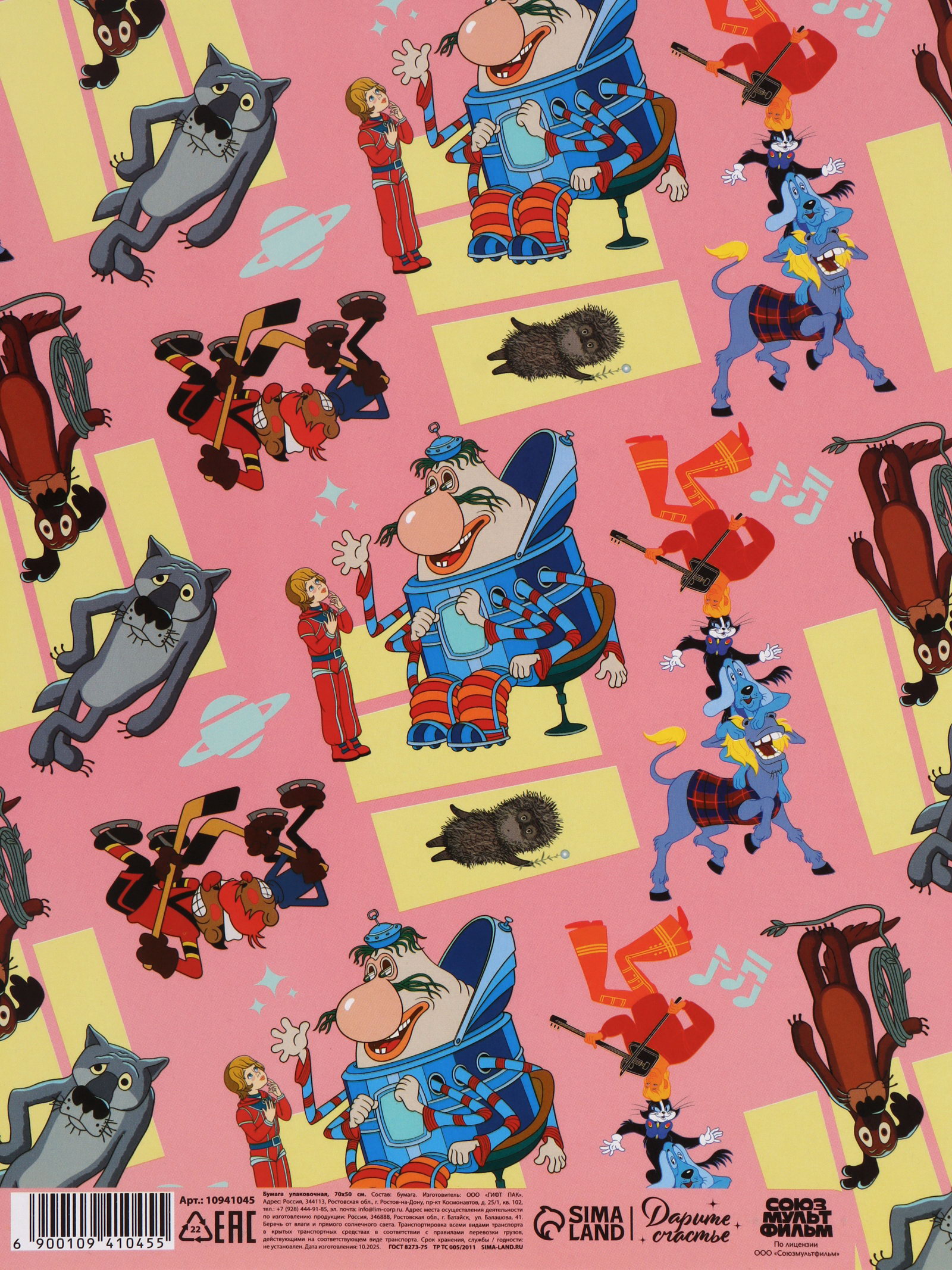 Бумага упаковочная глянцевая "Добрые мультики", 50x70 см, Союзмультфильм, Россия
