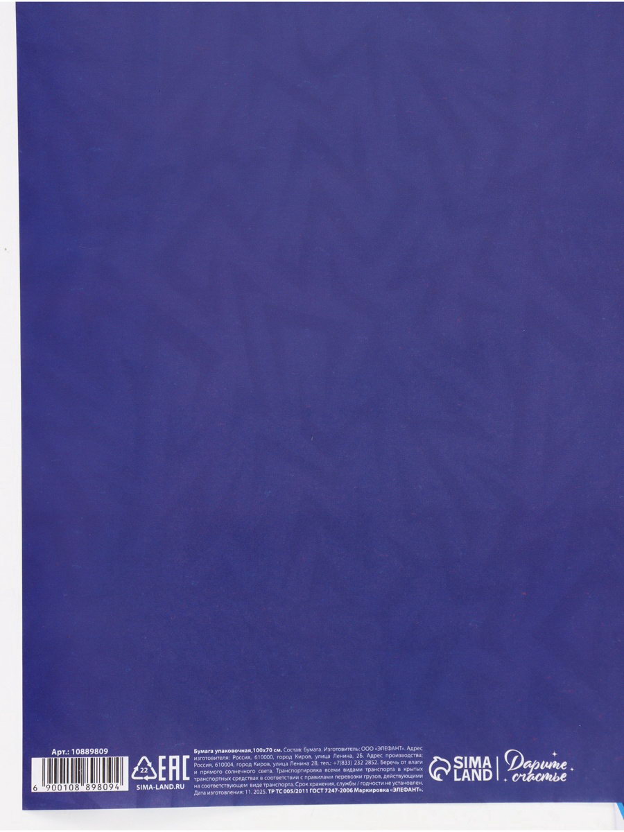 Бумага упаковочная глянцевая двухсторонняя "Паттерн", 70 x 100 см, Дарите Счастье, Россия
