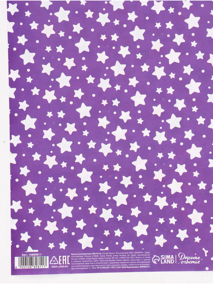 Бумага упаковочная глянцевая двухсторонняя "Звёзды", 70 x 100 см, Дарите Счастье, Россия